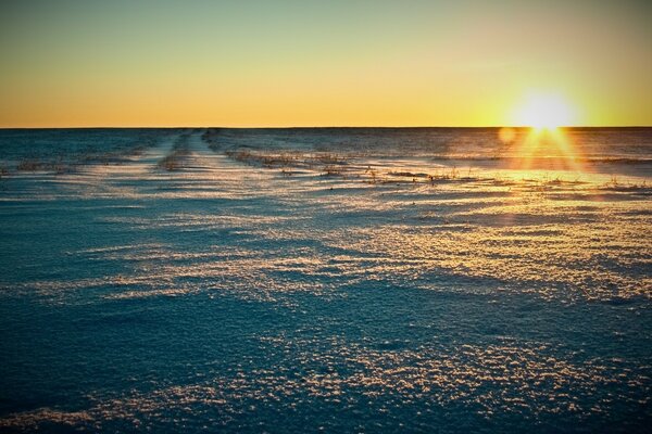 Sonnenuntergang in der Wintersteppe