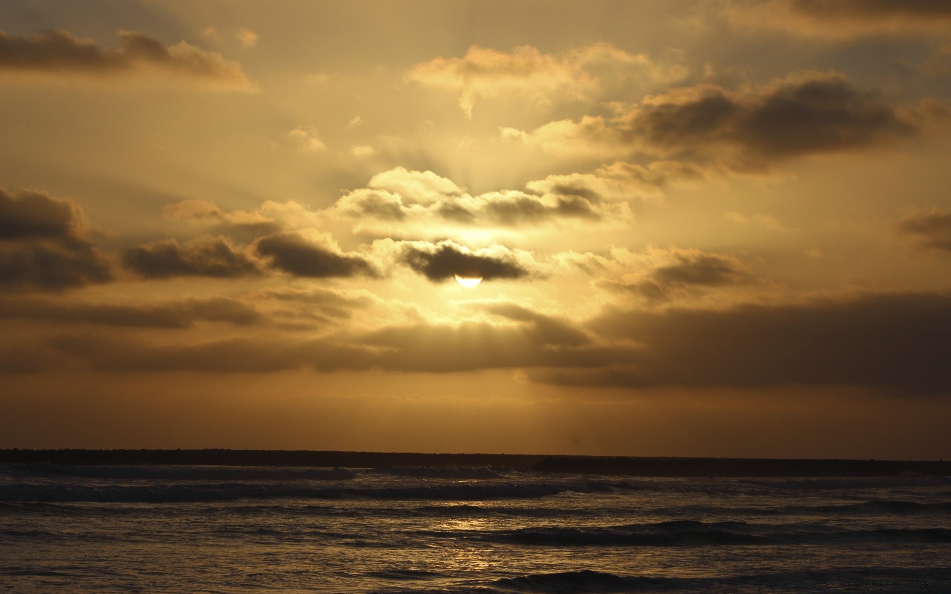 Die Stille des Meeres und die Sonne, die sich hinter den Wolken verbarg