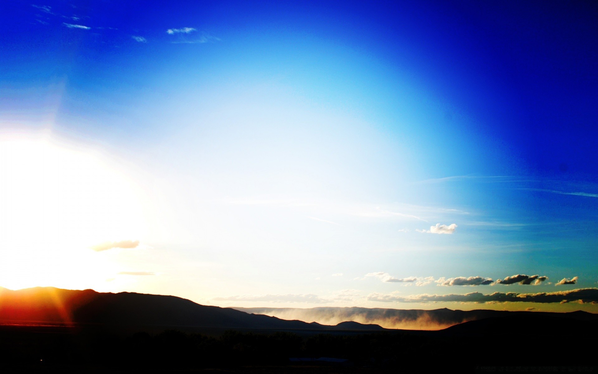 Der abendliche blaue himmel und die sonne untergeht im abgrund des ozeansDer abendliche blaue Himmel und die Sonne untergeht im Abgrund des Ozeans