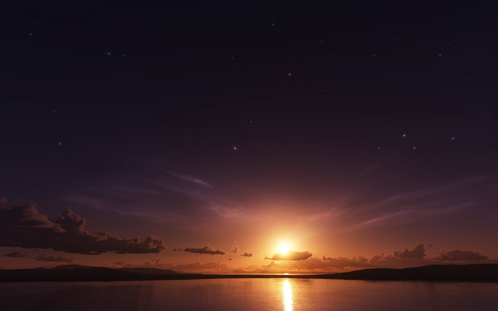Himmel mit klängen und sonnenuntergang über dem wasserHimmel mit Klängen und Sonnenuntergang über dem Wasser