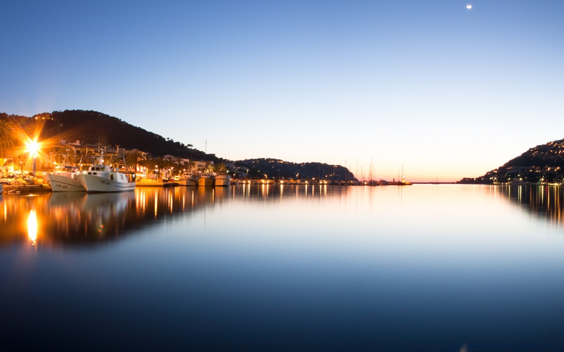 Heller Sonnenuntergang über dem Wasser