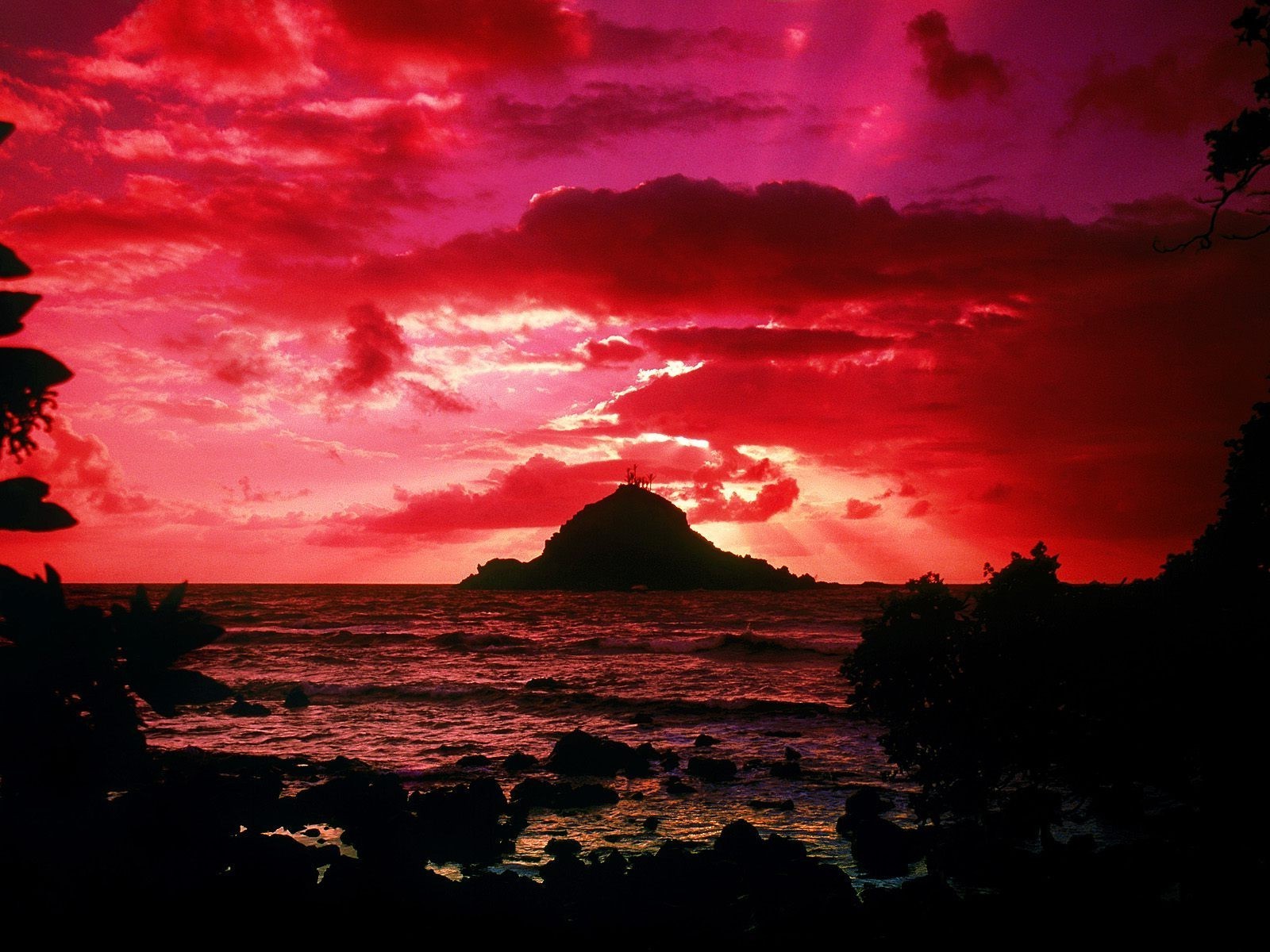Sonnenuntergang am meer mit häusern auf den felsenSonnenuntergang am Meer mit Häusern auf den Felsen