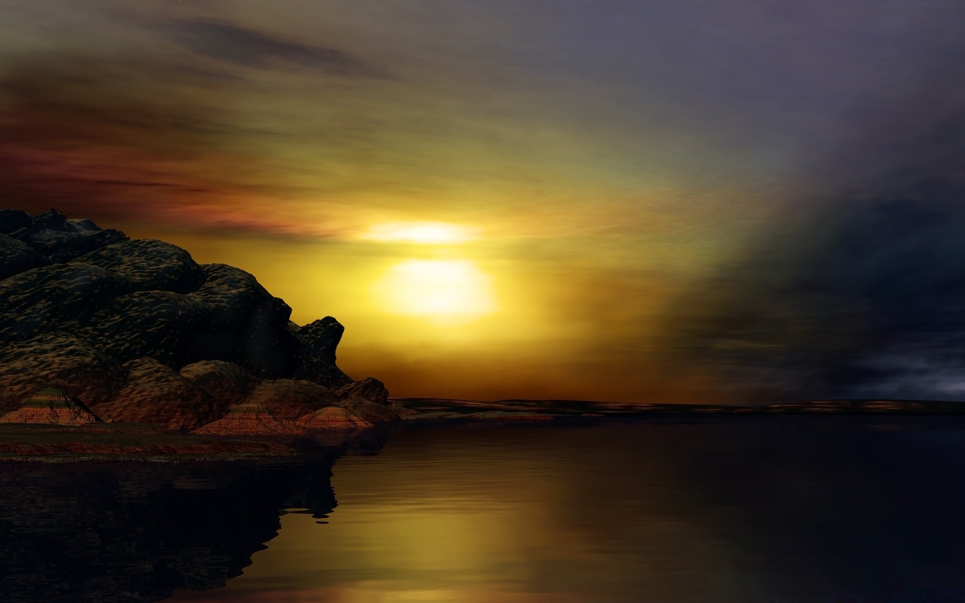 Sonnenuntergang oder Sonnenaufgang auf dem Wasser