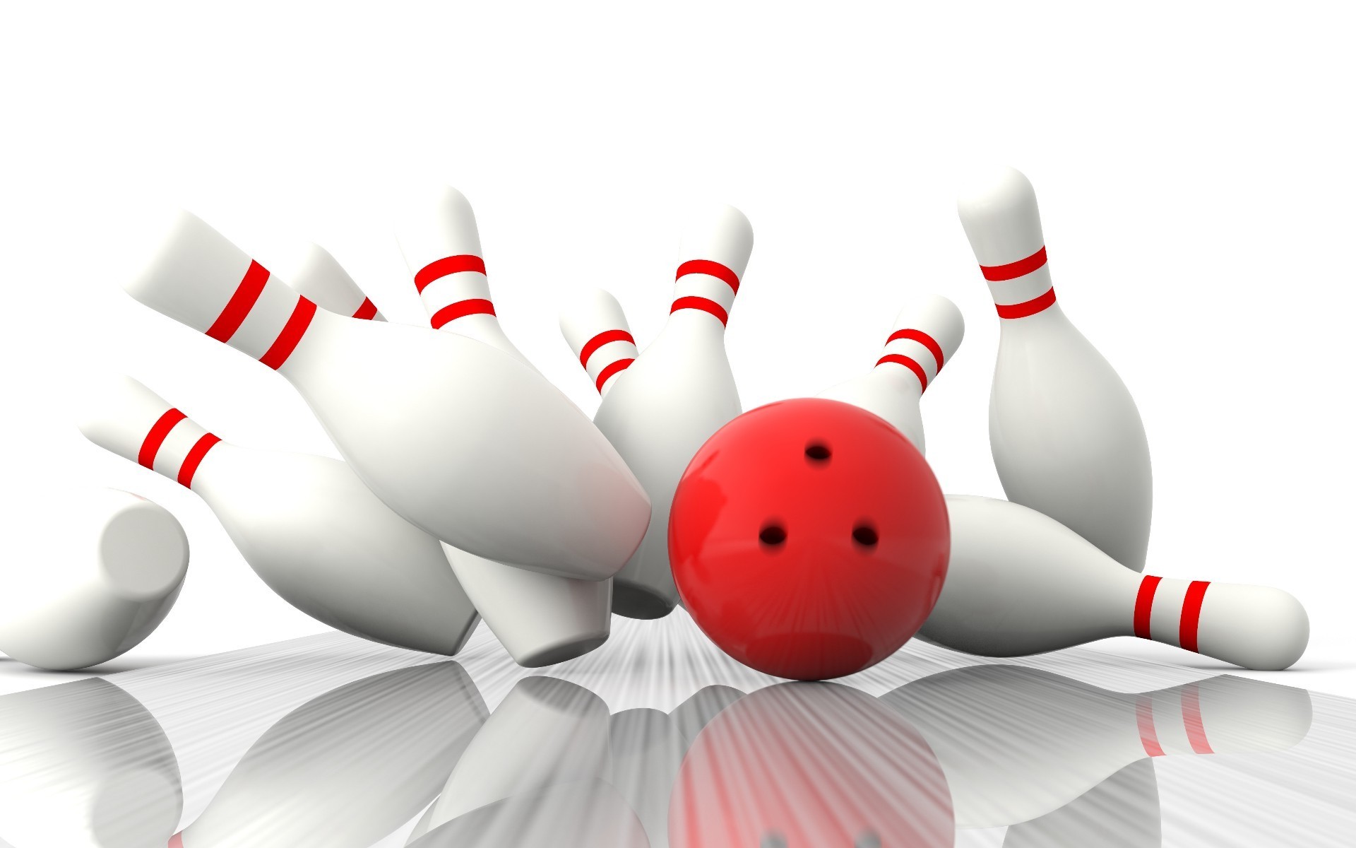 Bowlingkugel klopft die Pins ab