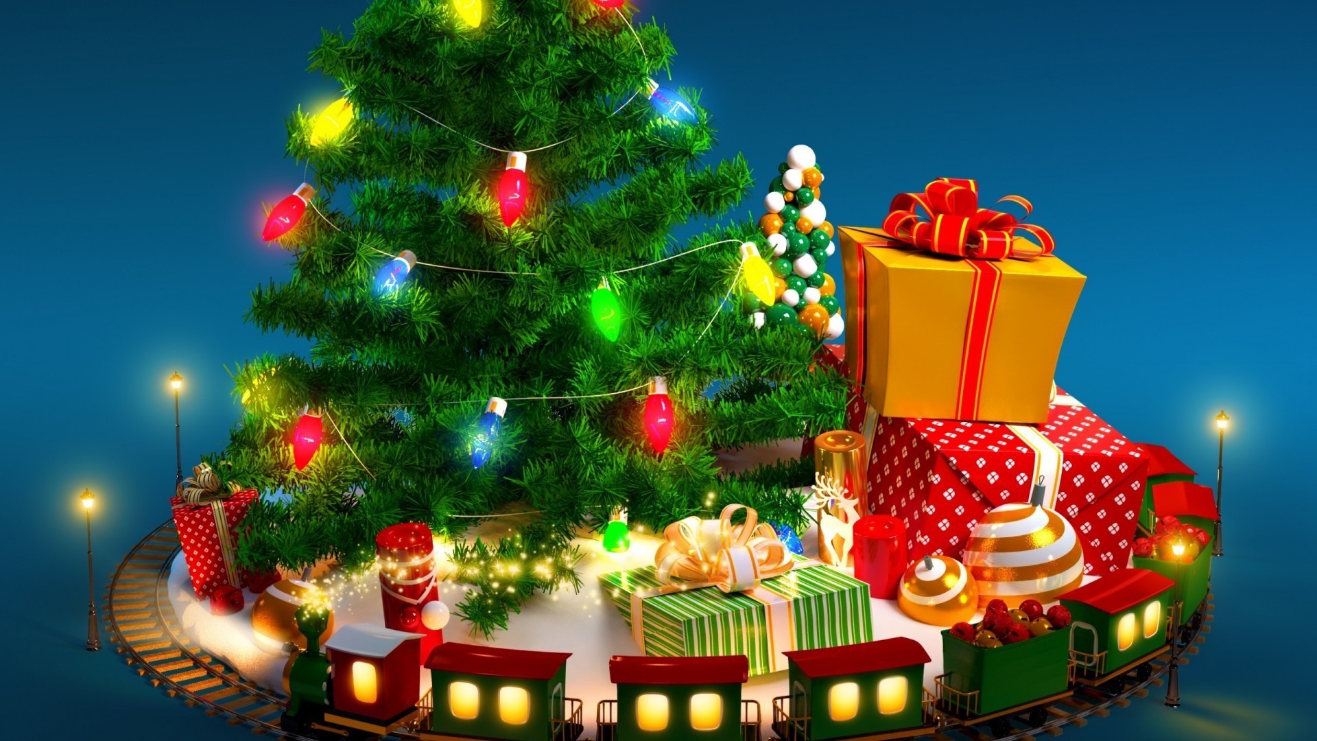Die Weihnachtsbäume sind voll mit Spielzeug. Neues Jahr