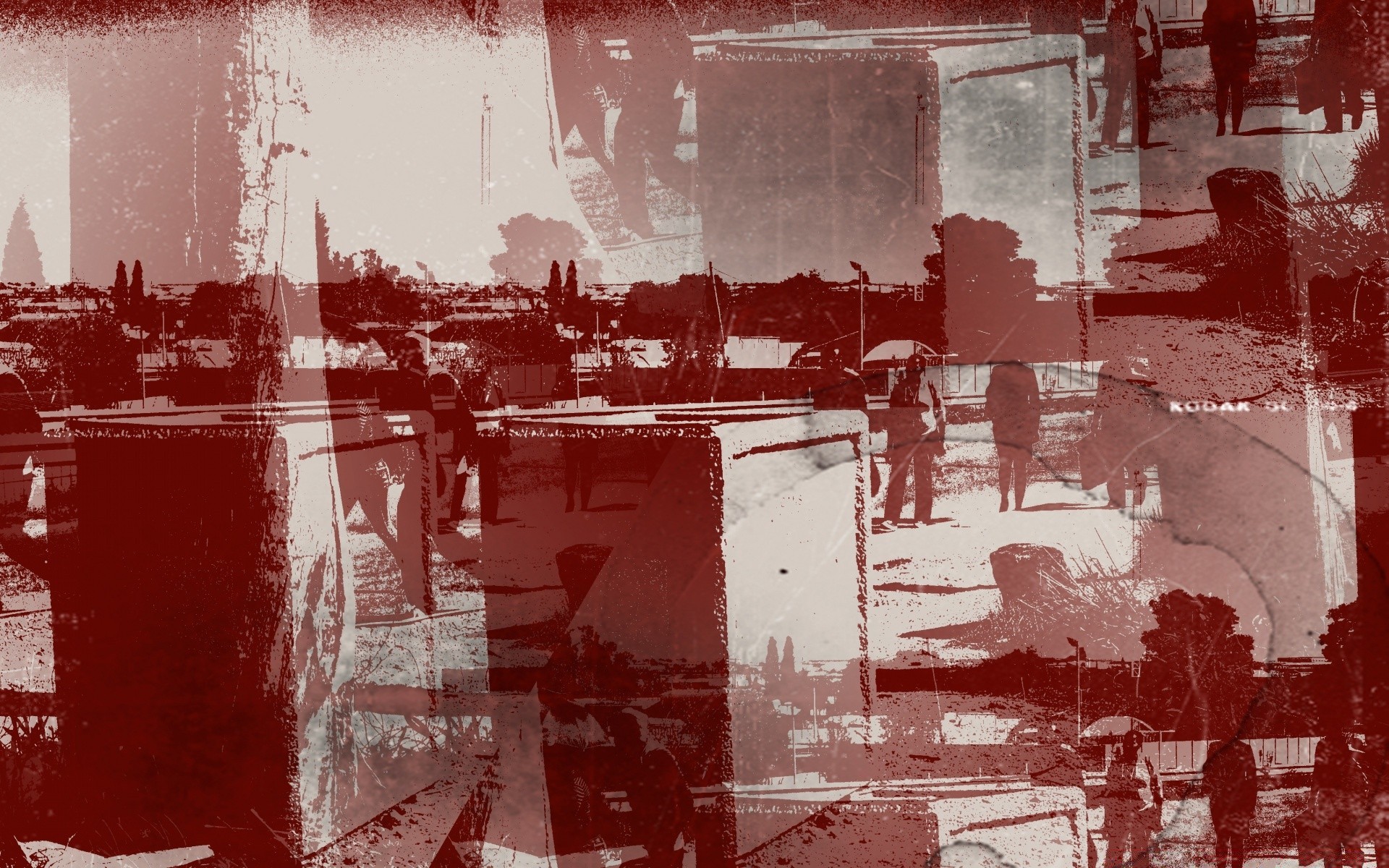 Weiße Flecken auf dem Asphalt und ein Apple-Symbol in der Mitte