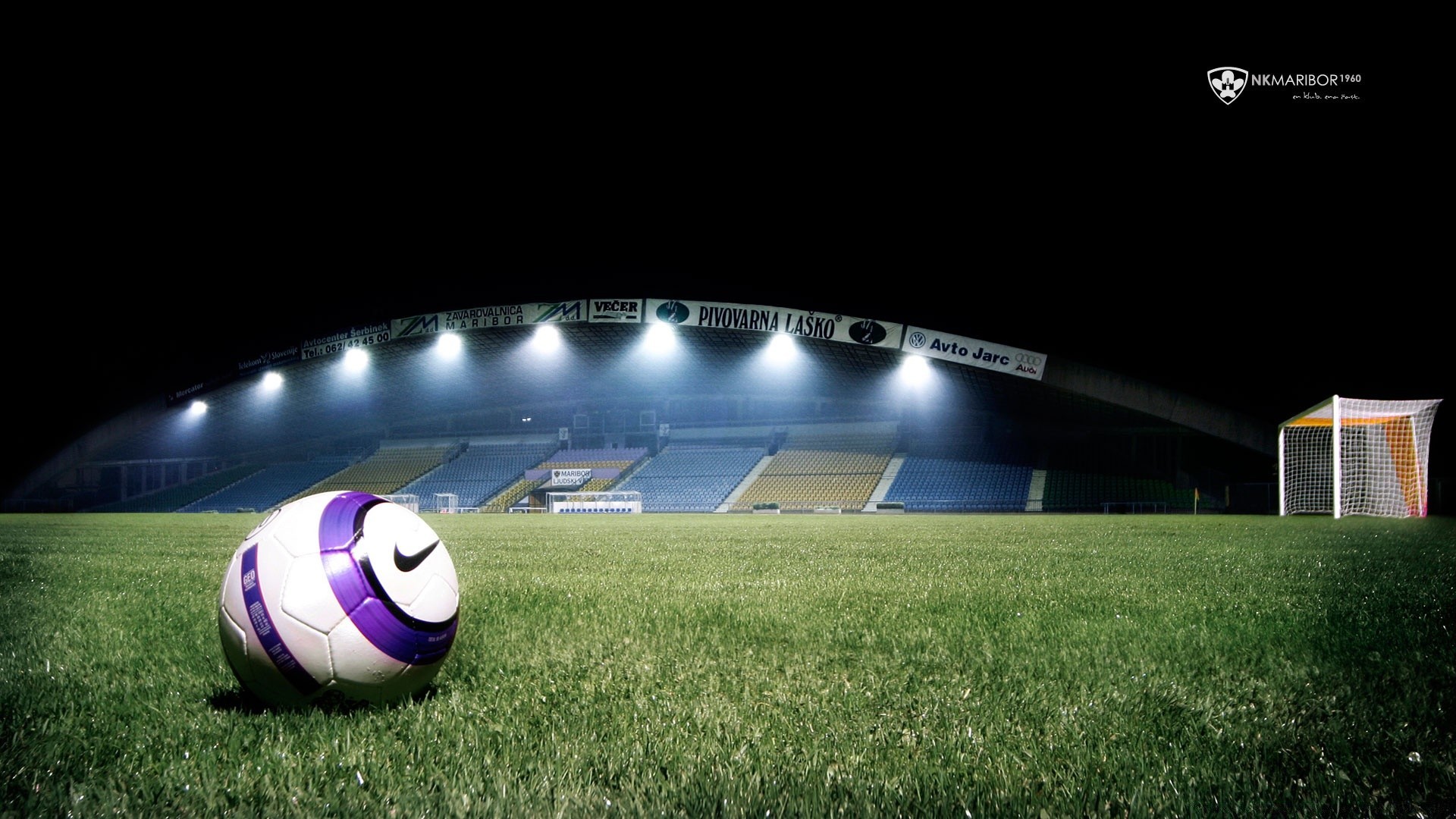 Fußball auf einem leeren Sportplatz. Ball auf dem Rasen