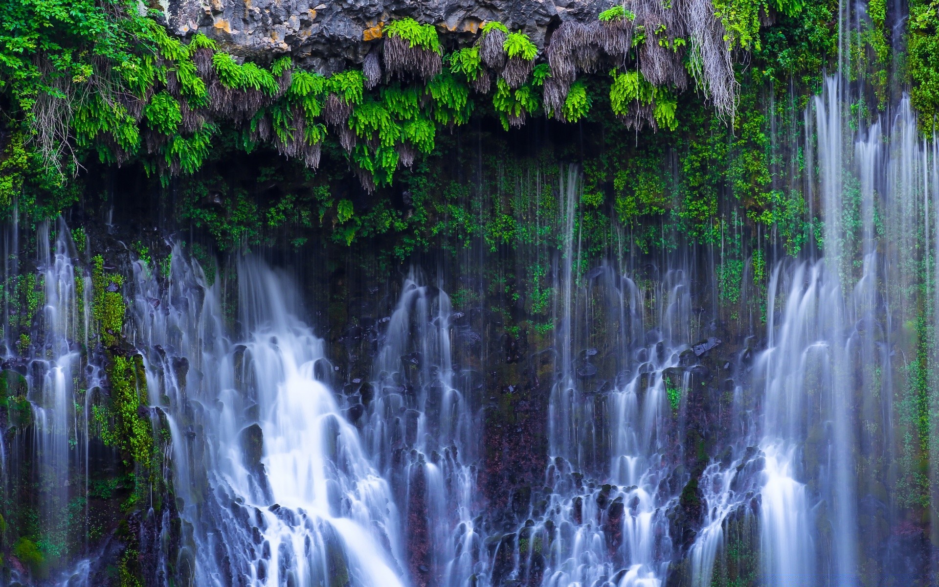 Landschaft eines hohen wasserfalls auf einem wilden waldhintergrund