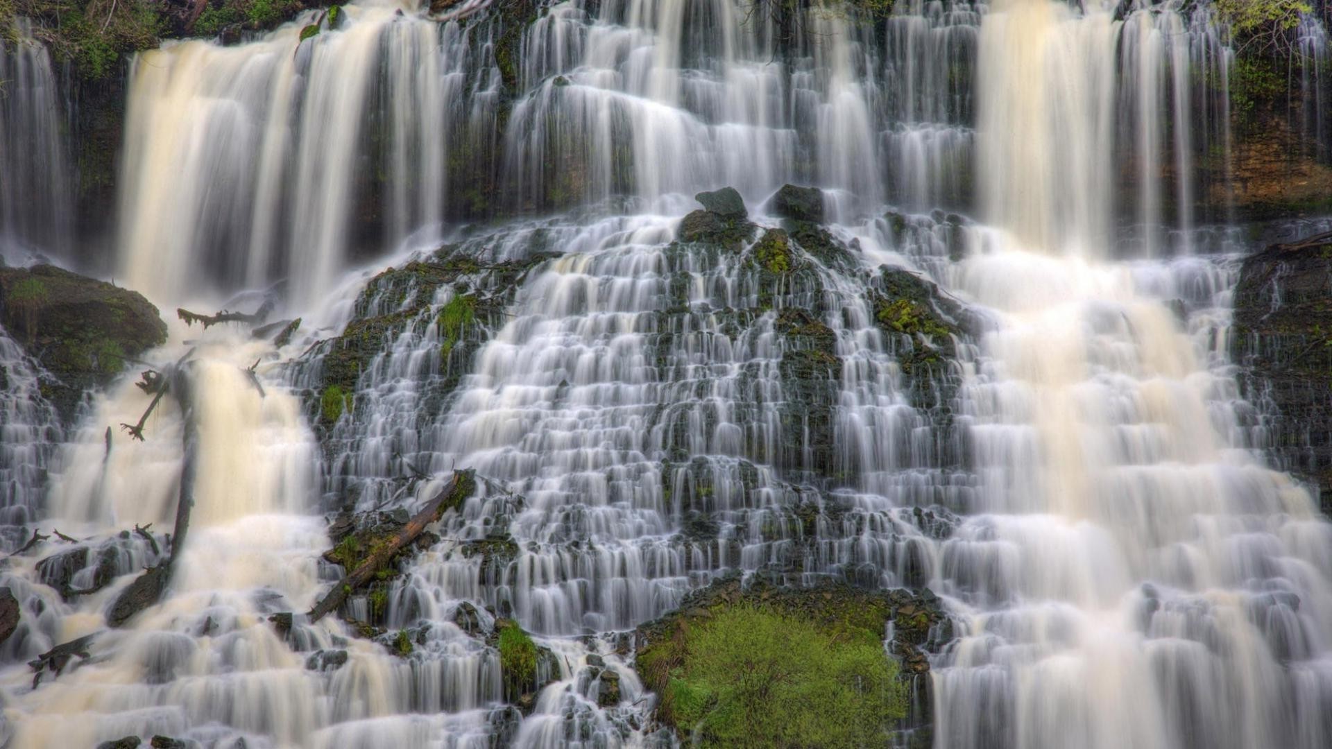 Kaskadierender Wasserfall, der von den Felsen fällt
