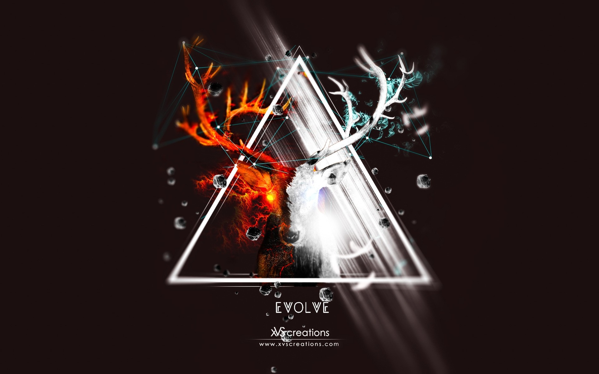 Das bild eines hirsches in form von bösem und gutem in einem dreieckDas Bild eines Hirsches in Form von Bösem und Gutem in einem Dreieck