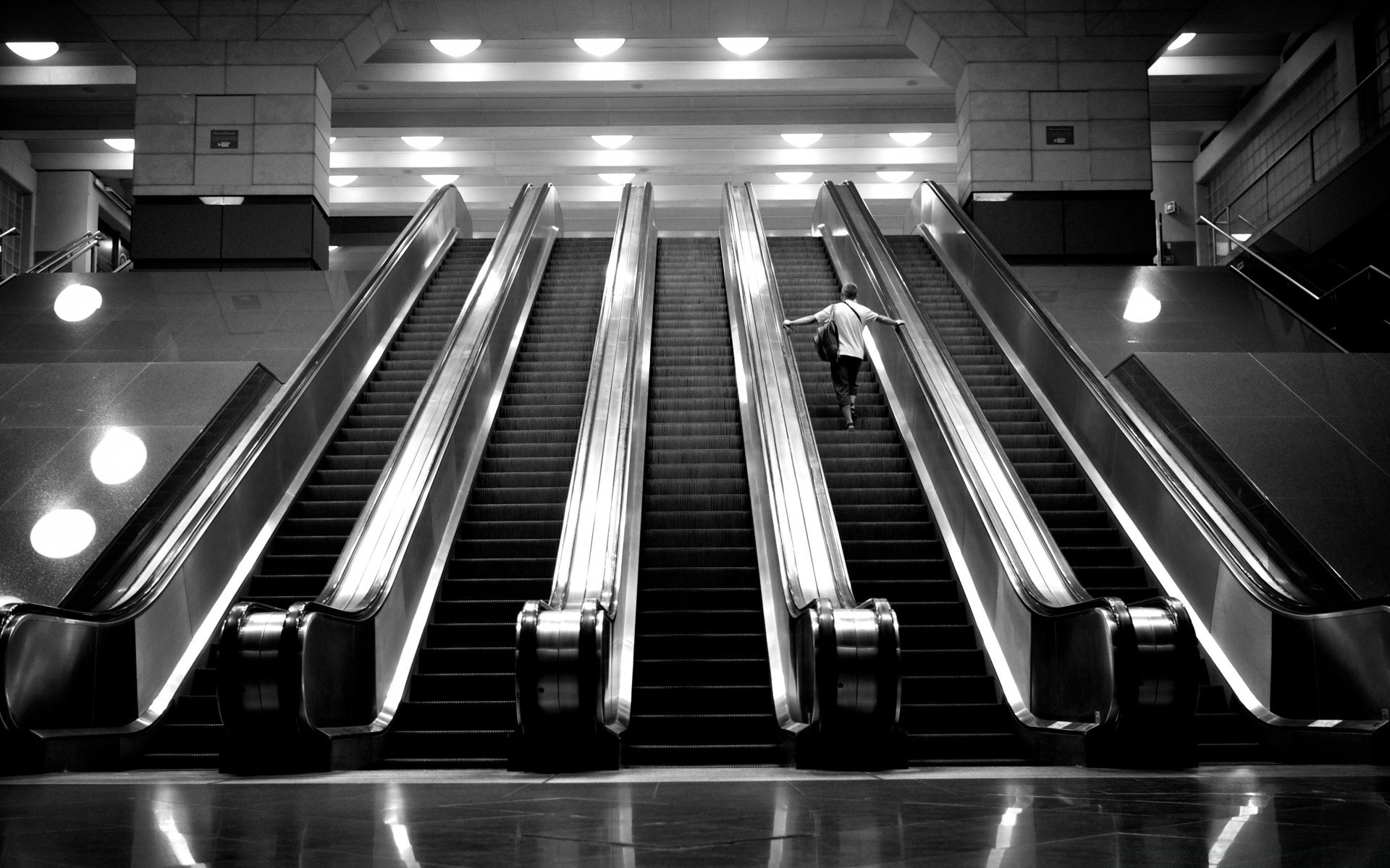 Leere Rolltreppen Schwarz-Weiß-Bild
