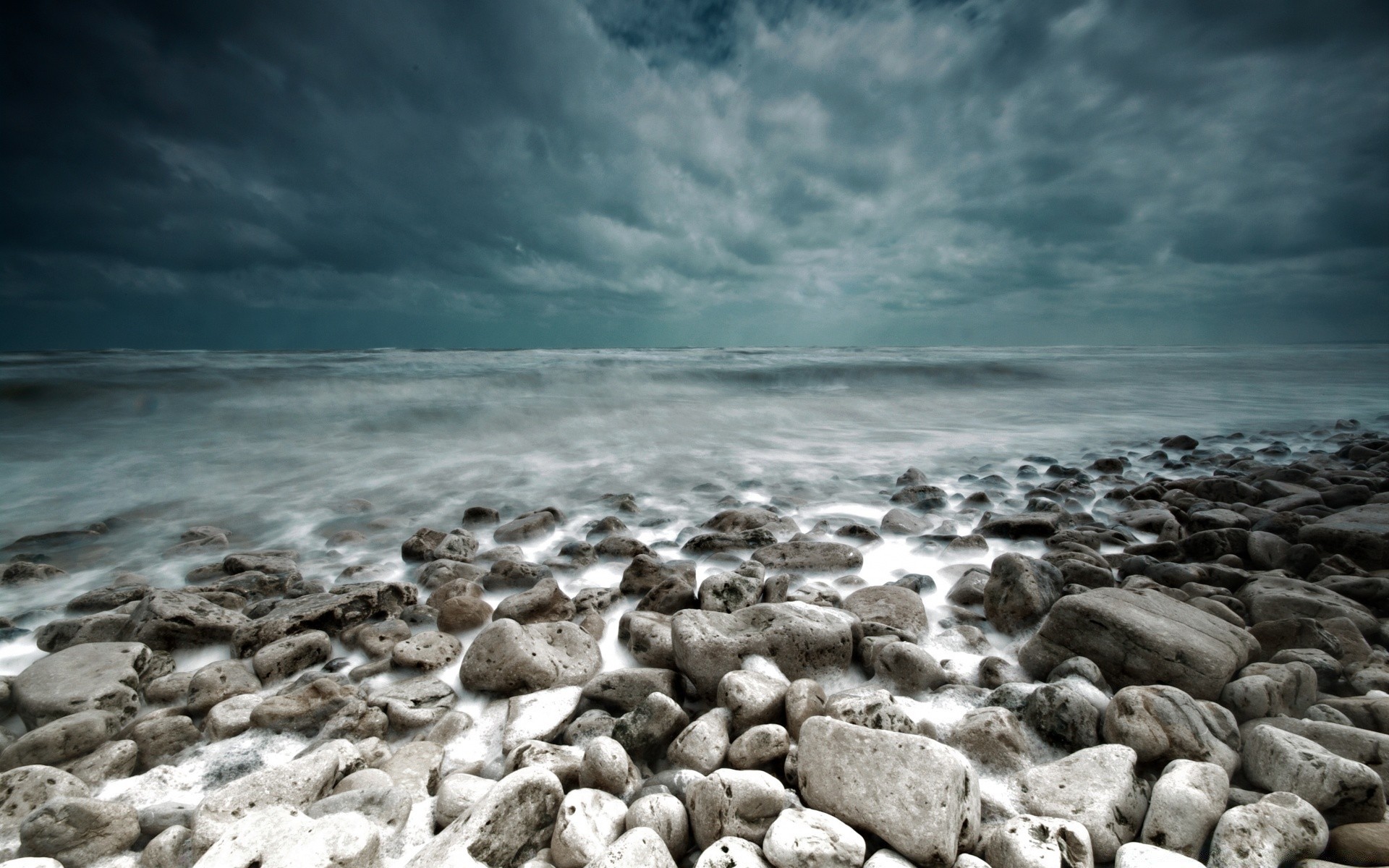 Der Kiesstrand wartet auf die nächste Welle