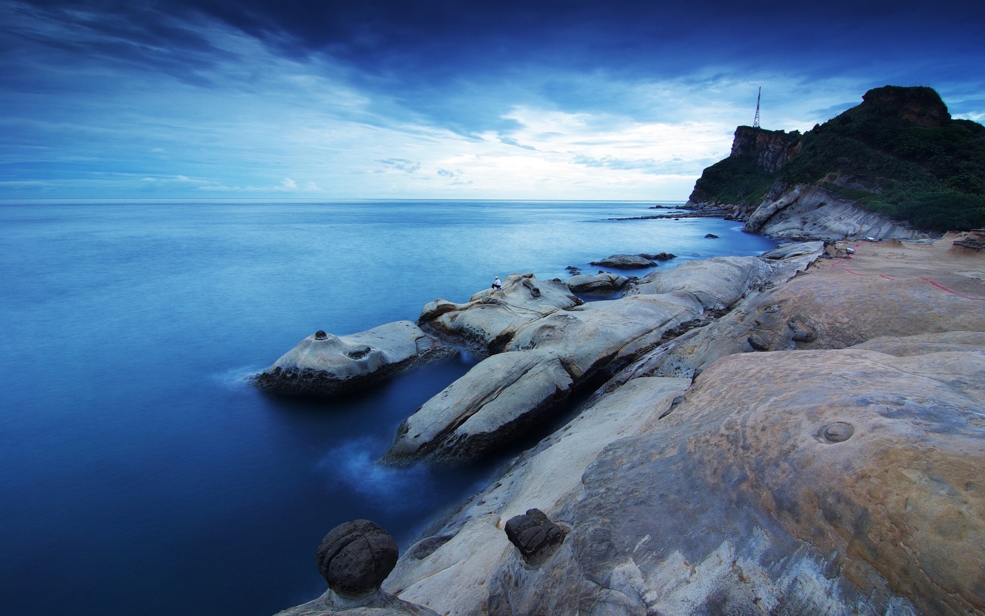 Schöne Landschaft. Das Meer und die Klumpen am Ufer