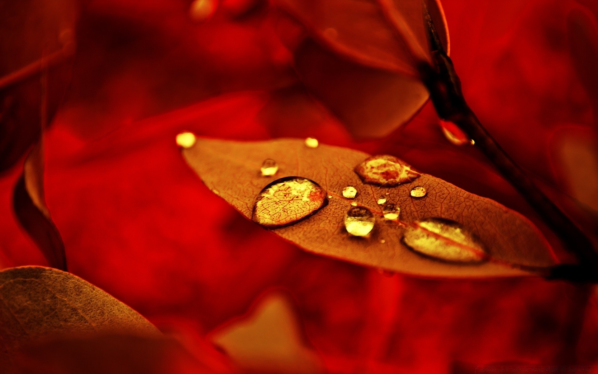 Ein Tropfen Wasser auf dem Laub eines Baumes