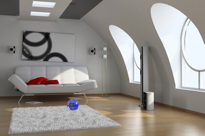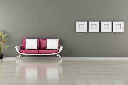 Modernes, ausgezeichnetes interieur. minimalismus auf rotem hintergrundModernes, ausgezeichnetes Interieur. Minimalismus auf rotem Hintergrund