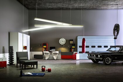Perfekt sauberes Wohnzimmer mit weißem Sofa