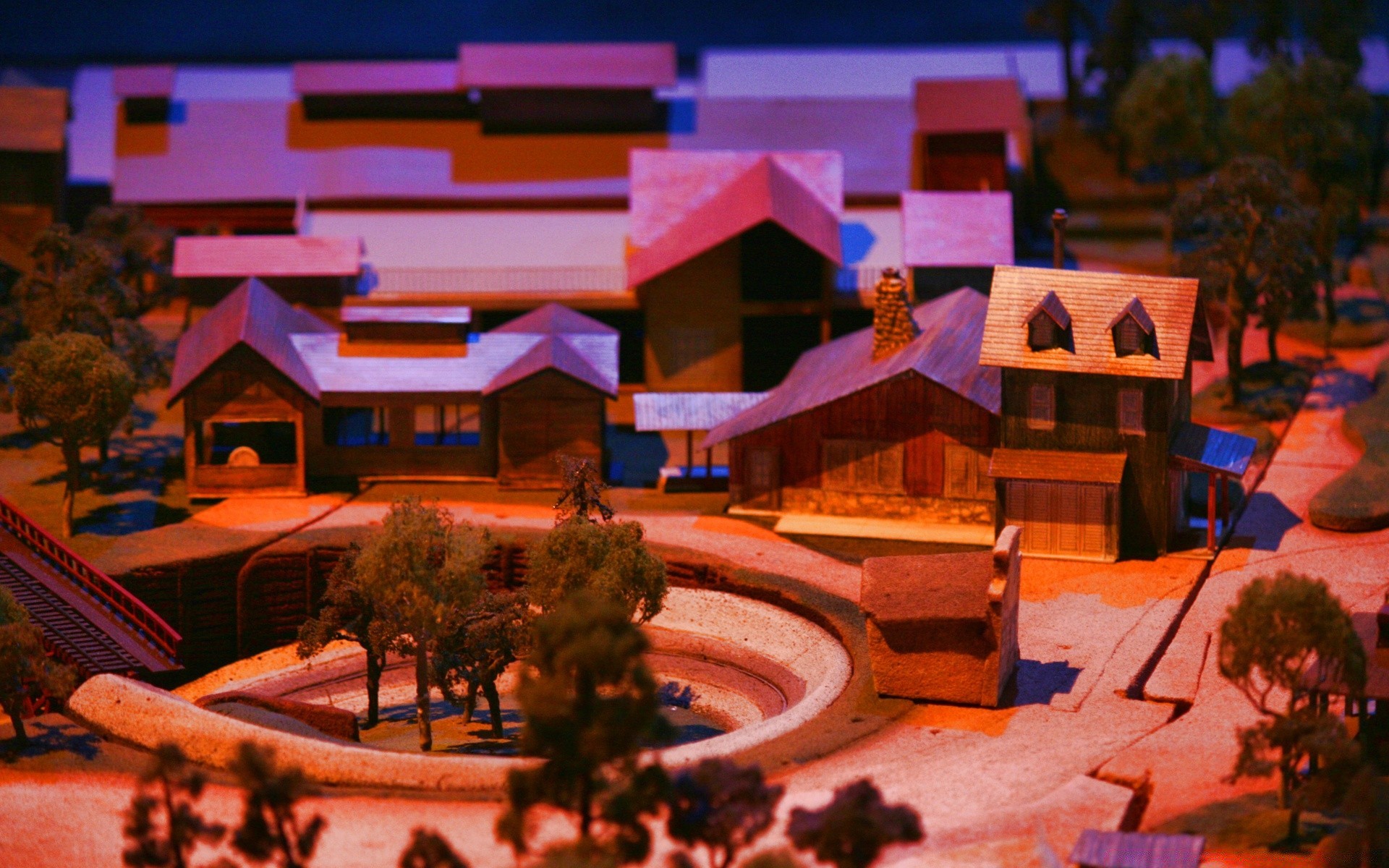 Blondine im kurzen Rock und schwarzen Stiefeln