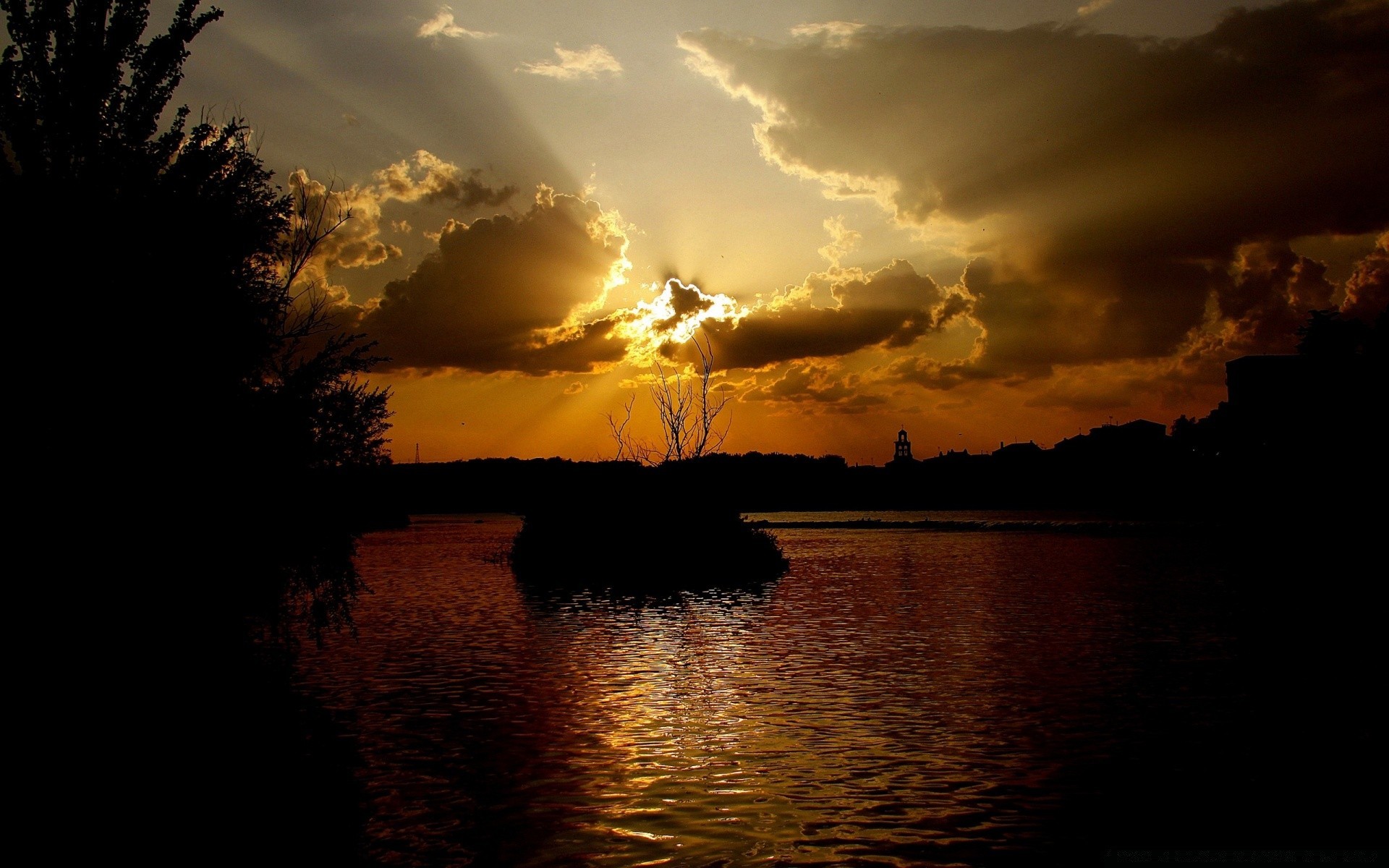 Die Sonnenstrahlen dringen durch dichte Wolken ein