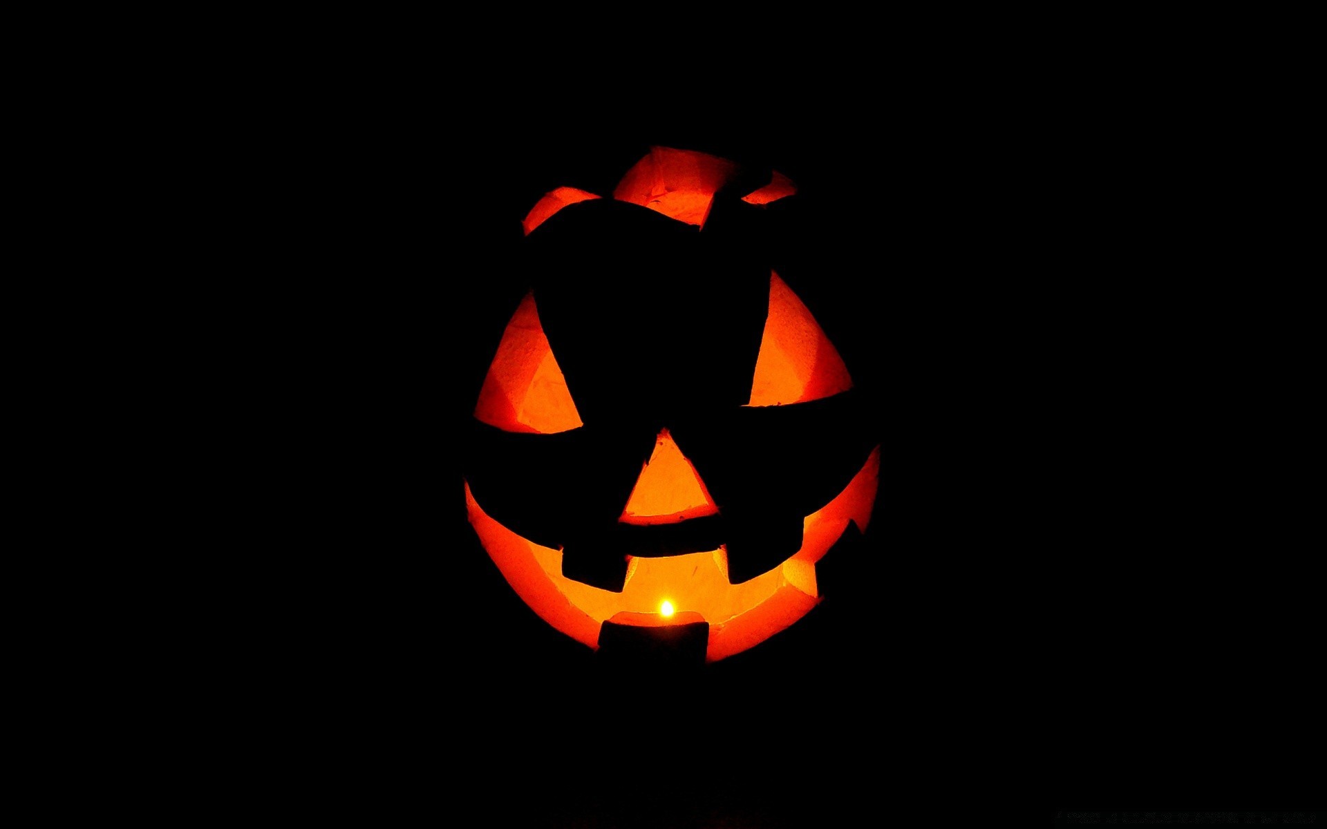 Ein unheimlicher kürbis. glühender kürbis auf dunklem hintergrundEin unheimlicher Kürbis. Glühender Kürbis auf dunklem Hintergrund
