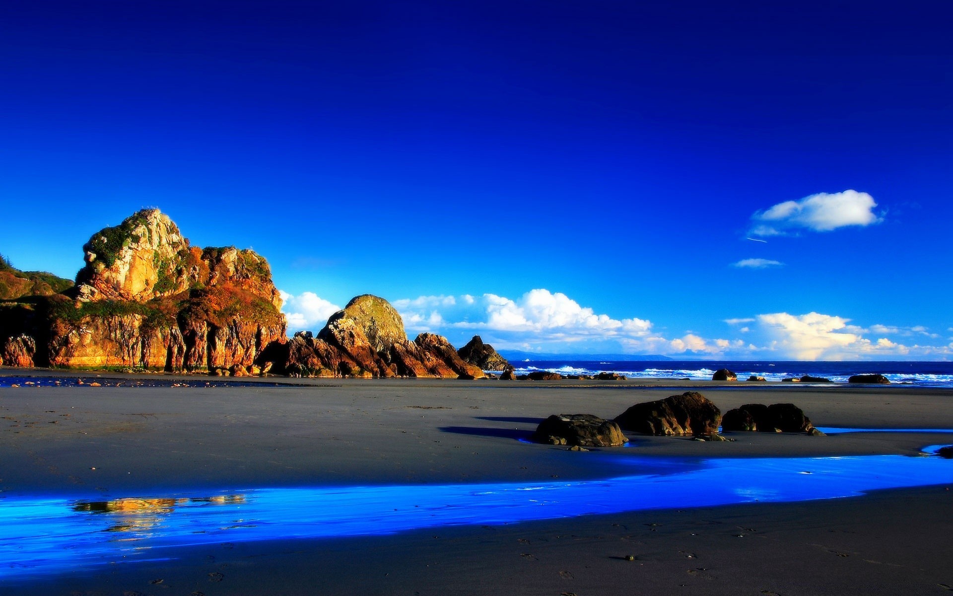 Die Säulen sind aus dem Wasser zu sehen und die Sonnenstrahlen am Himmel strahlen über ihnen