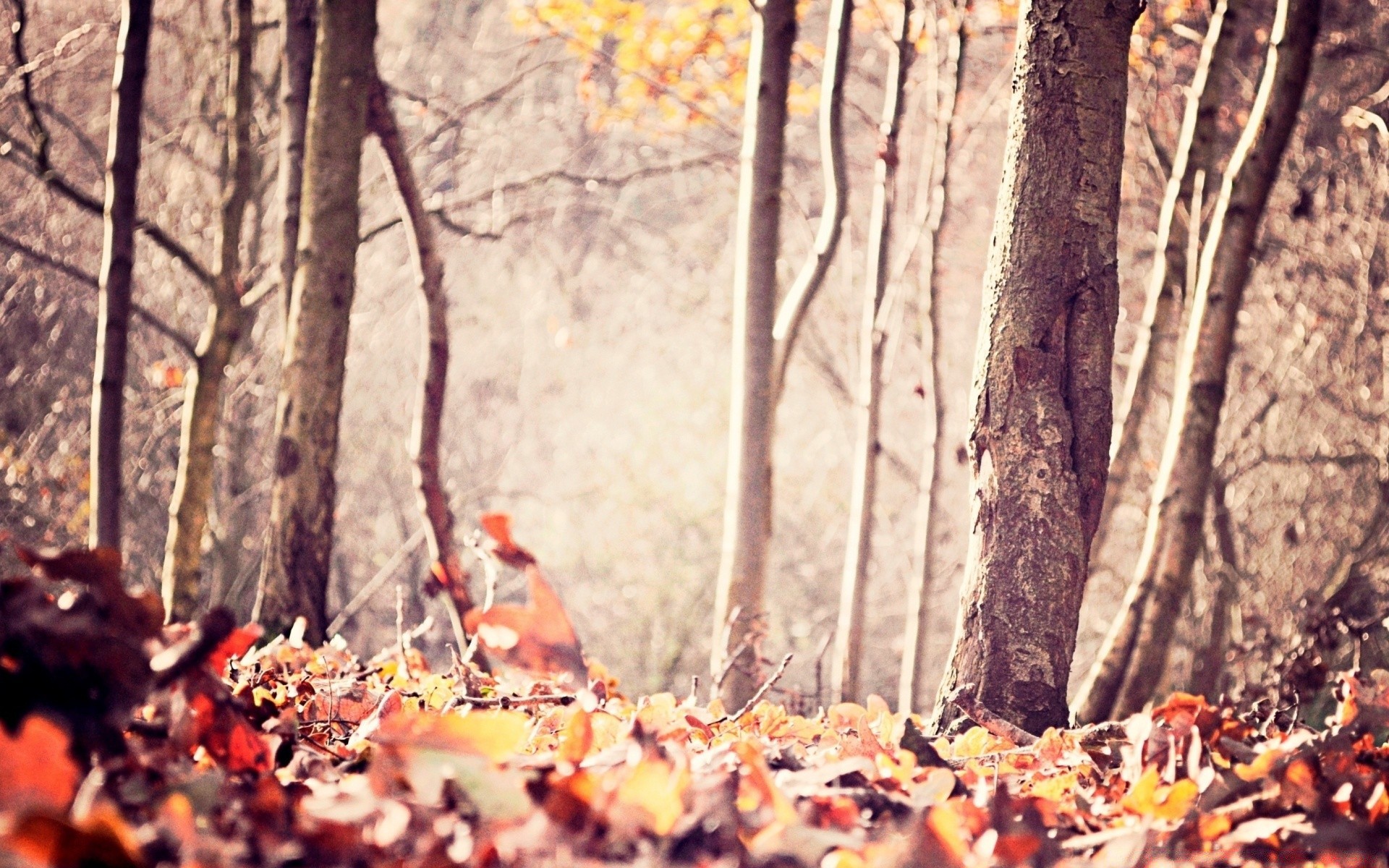 Herbstliche waldlandschaft von bäumen mit gelben blättern an einem warmen tagHerbstliche Waldlandschaft von Bäumen mit gelben Blättern an einem warmen Tag