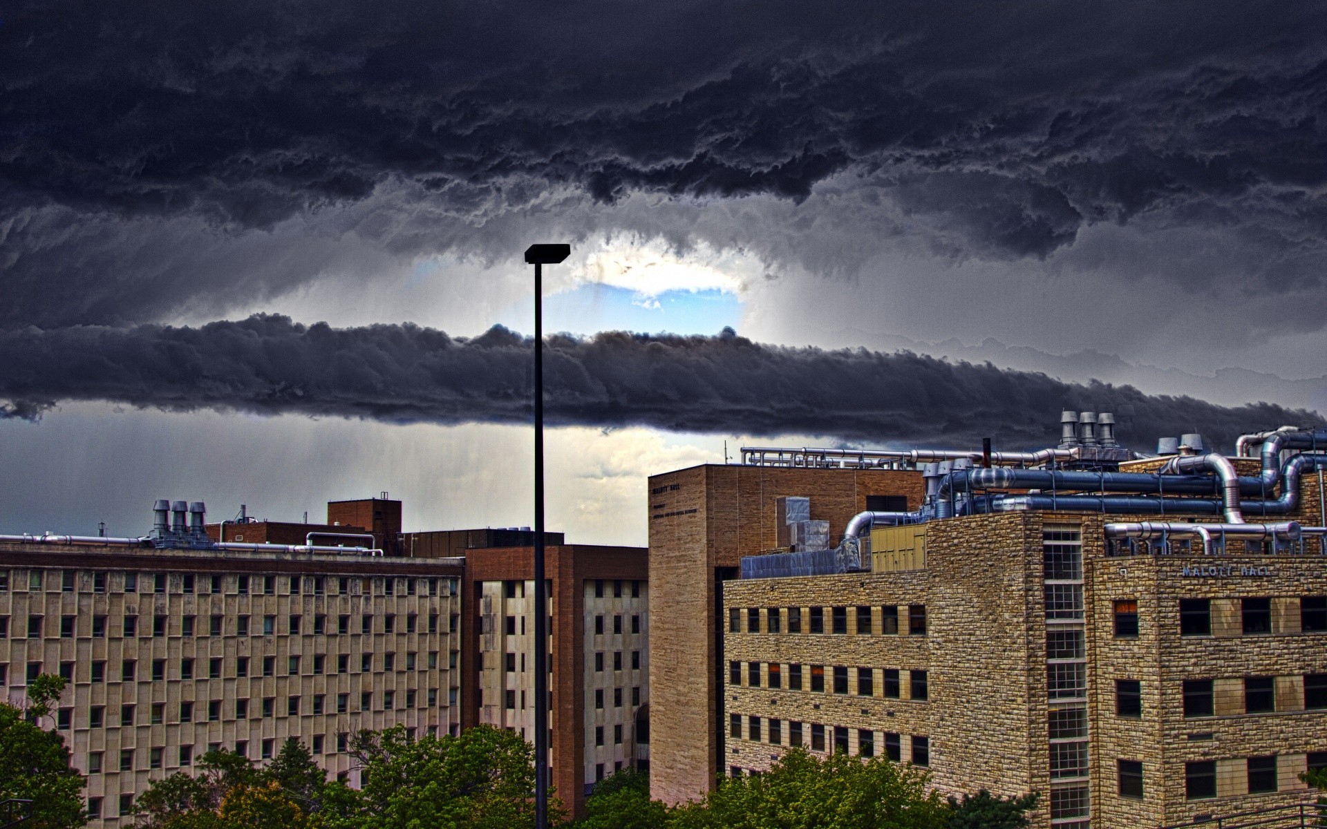 Bewölkter Himmel über dem Industriegebiet