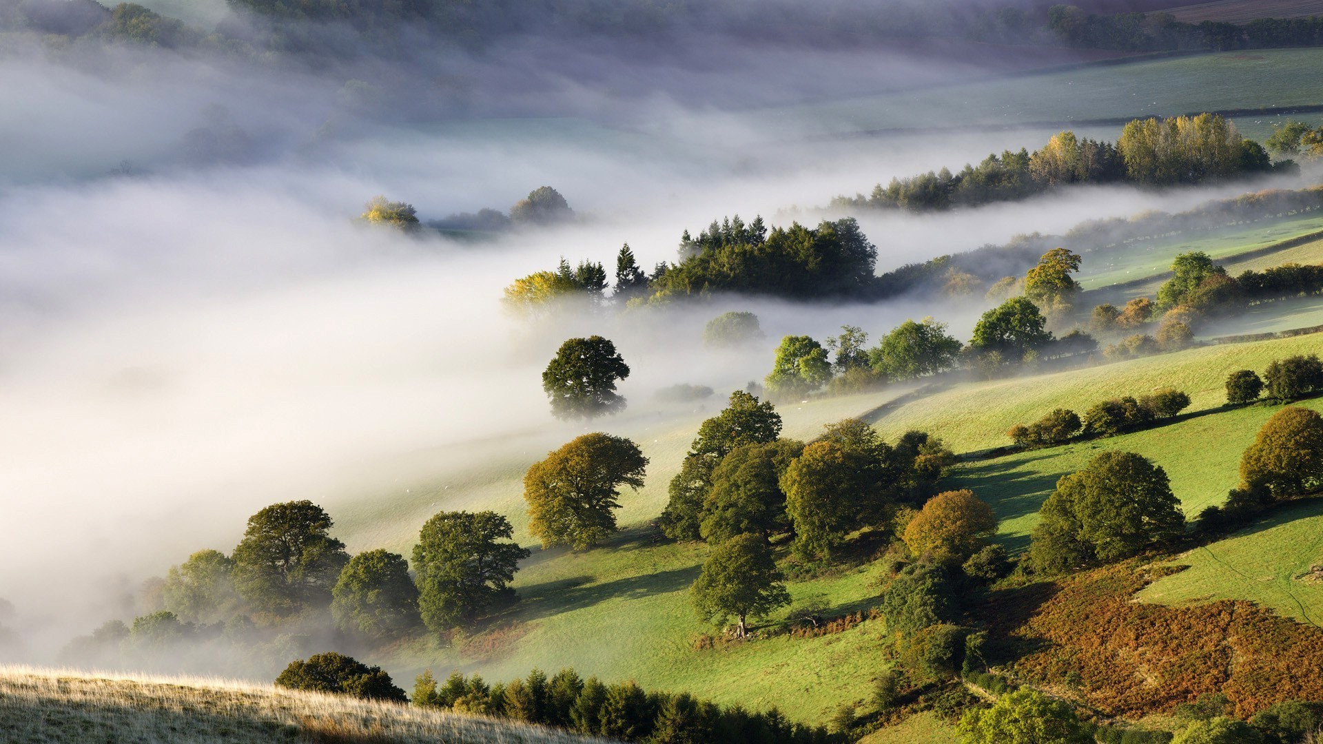 Dichter Nebel kommt in den Wald