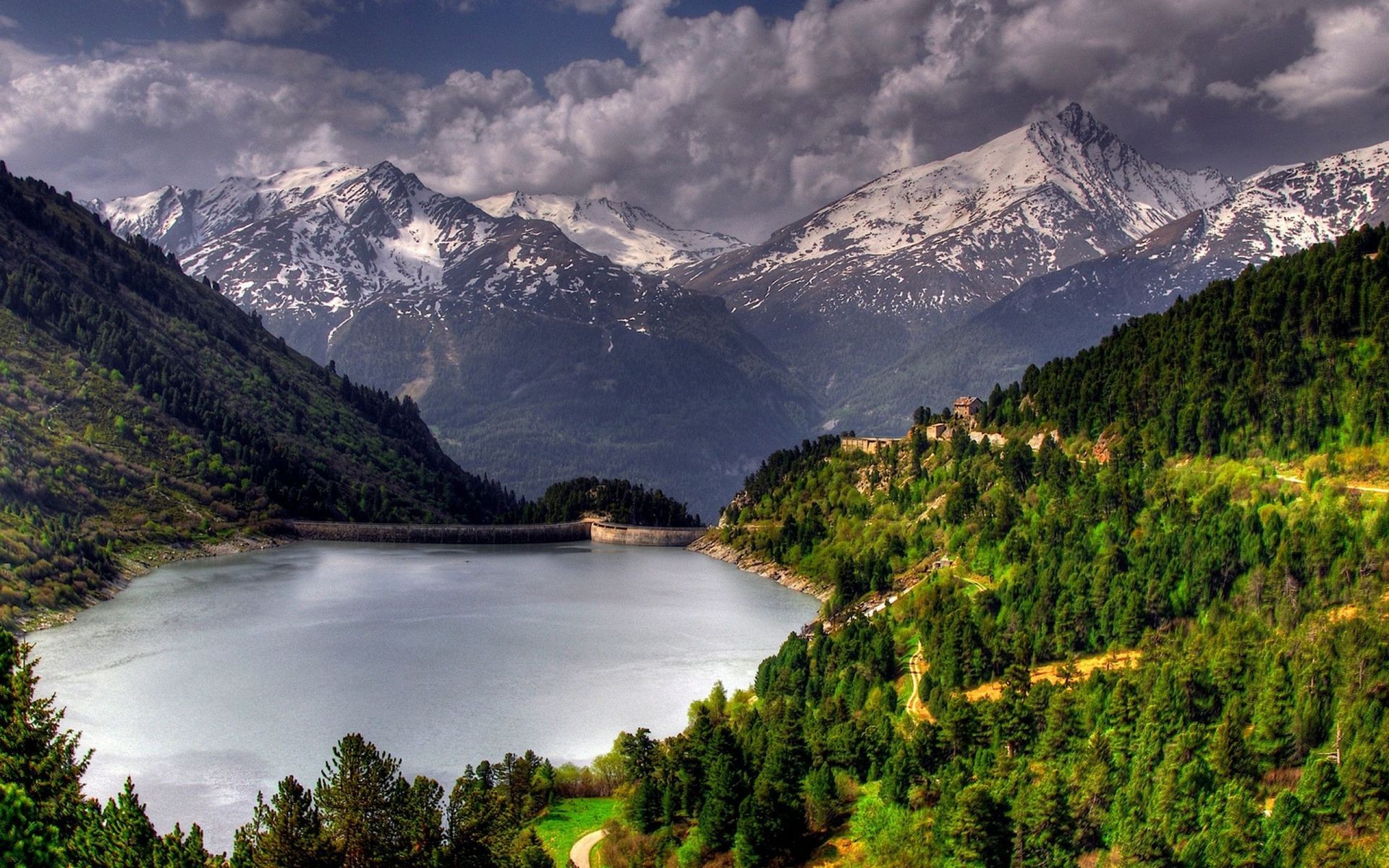 Hochgebirgssee mit Blick auf eisige Gipfel
