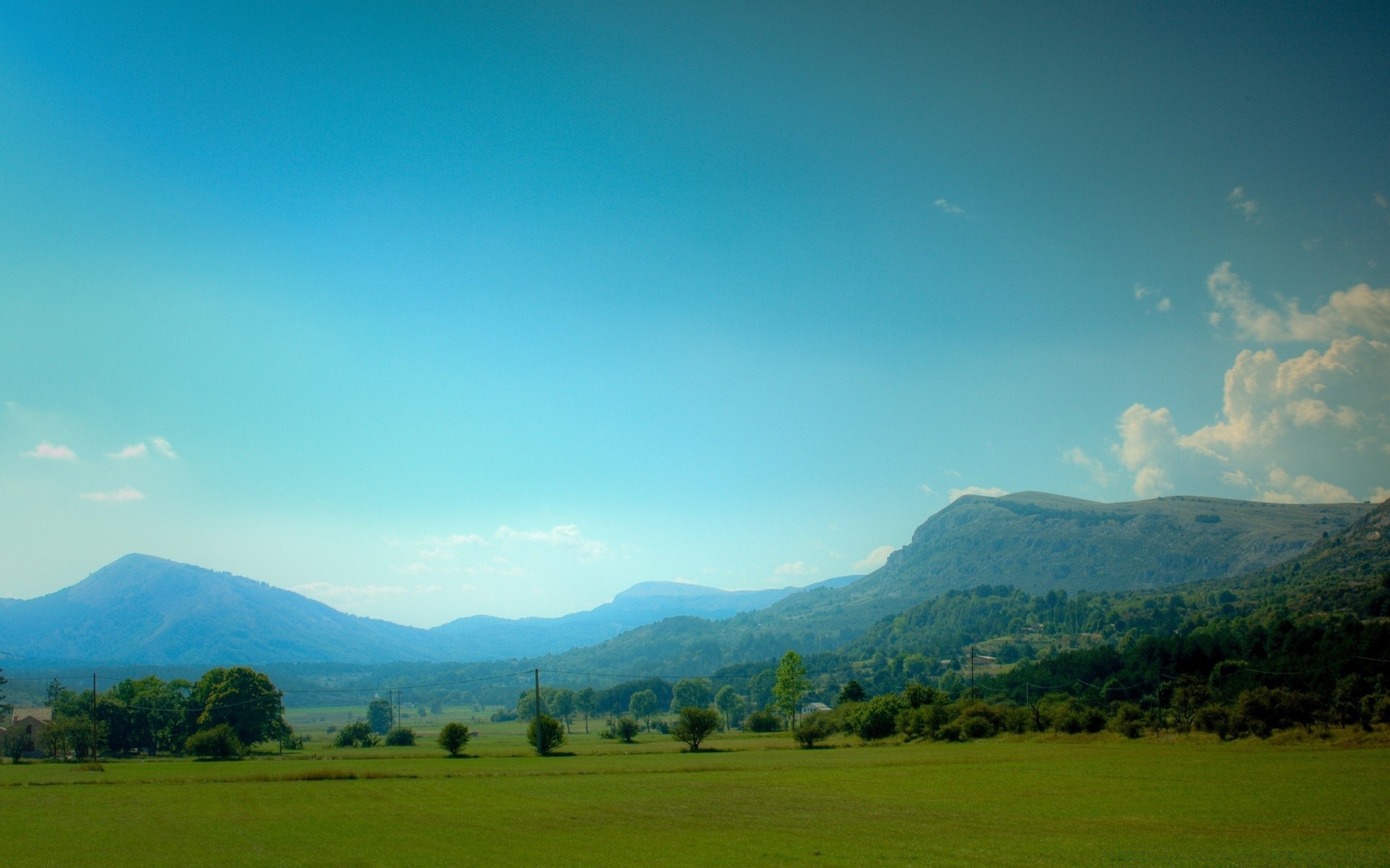 Landschaft der bewaldeten Berge am Himmelshintergrund