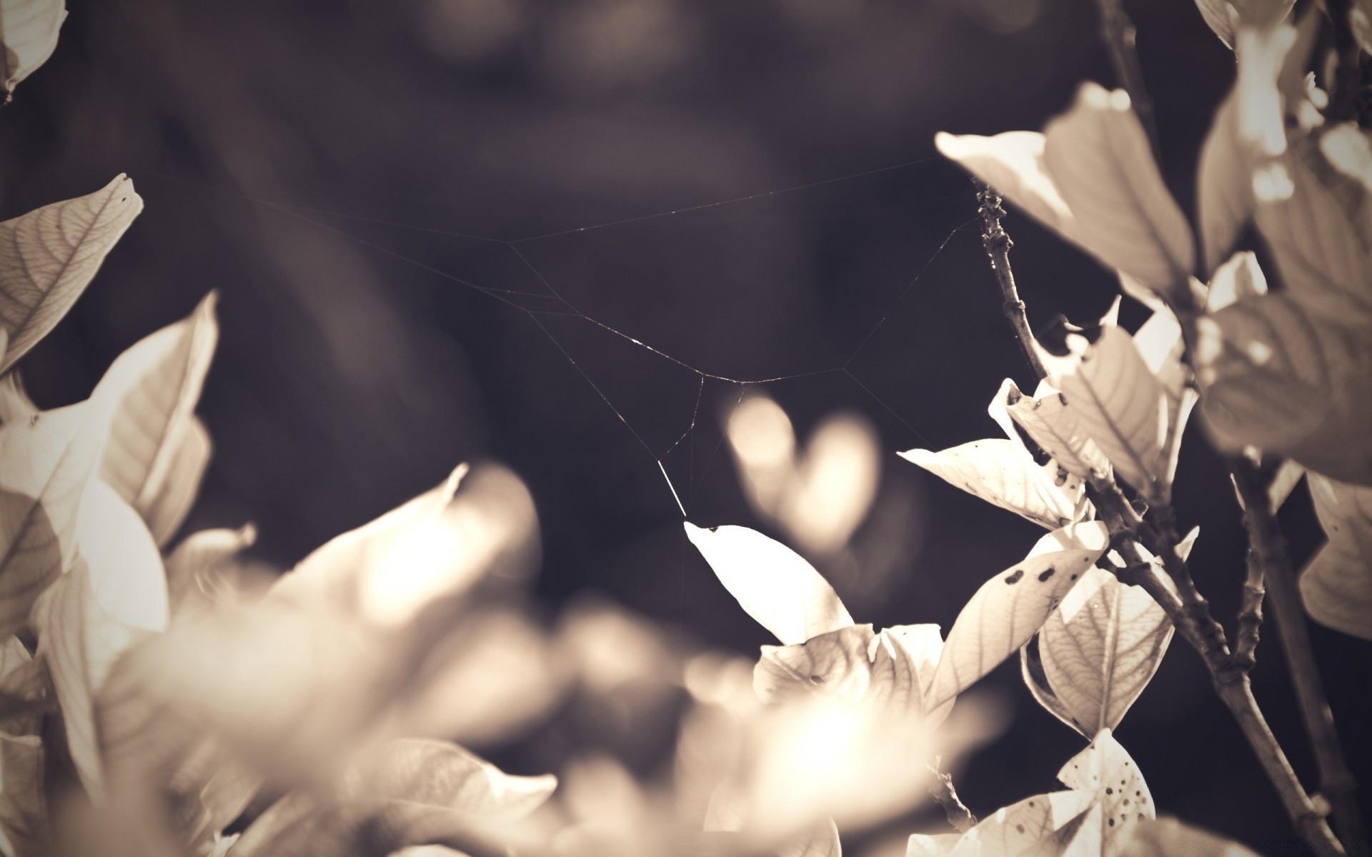 Vintage-foto der natur, blätter mit spinnweben, die an ihnen hängen, auf einem verschwommenen hintergrund