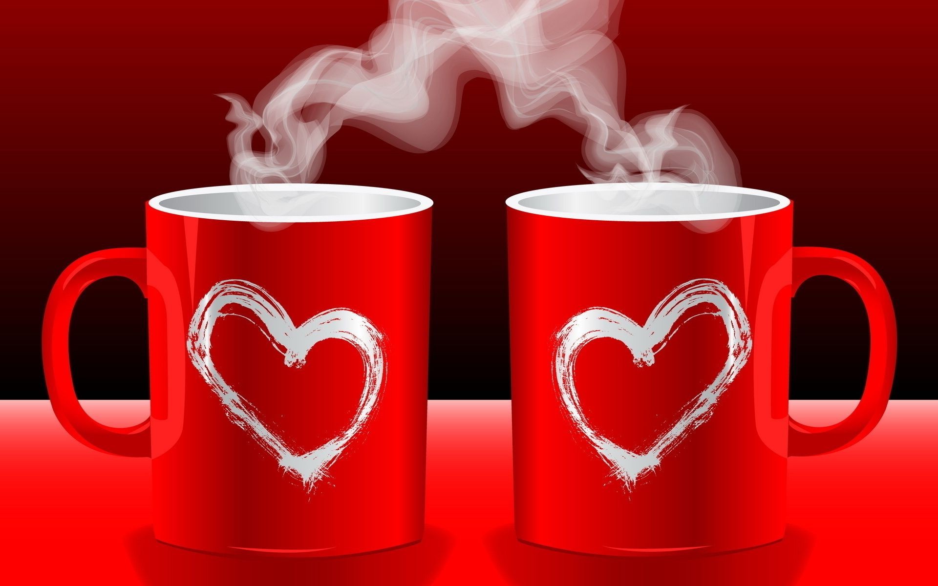 Grußkarte zum Heiligen Tag mit einer Tasse Kaffee