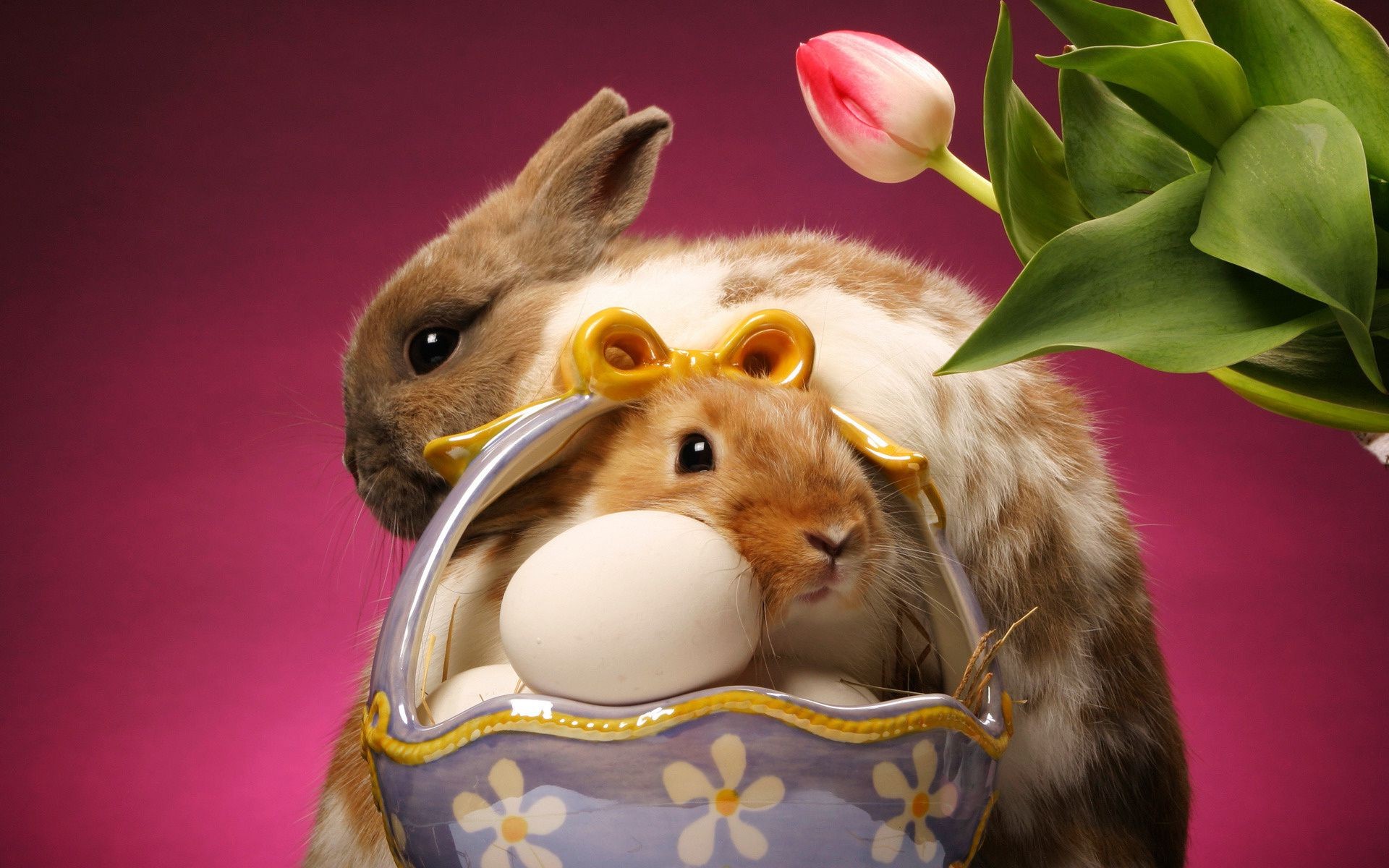 Süße Osterhasen im Korb