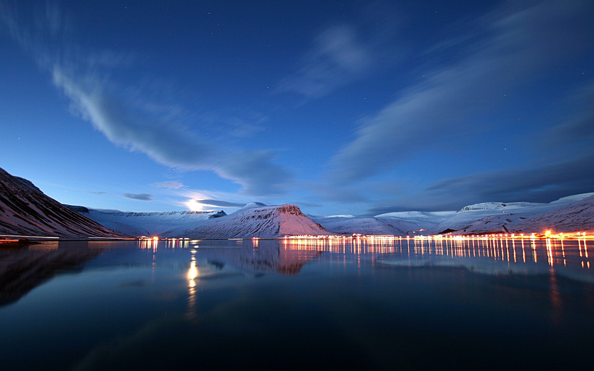 Schöne Landschaft. Die Berge spiegeln sich im See wider
