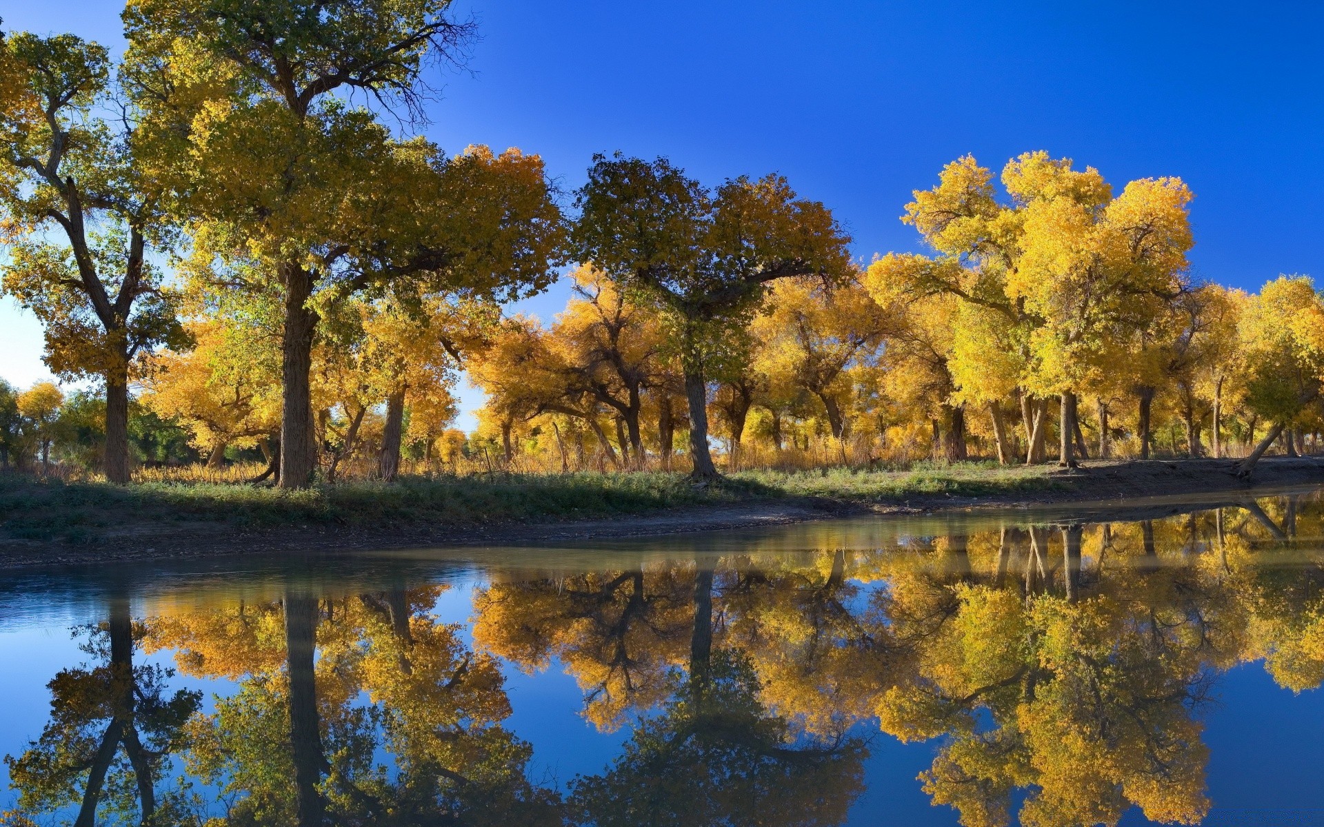 Herbstlandschaft mit See und Bäumen