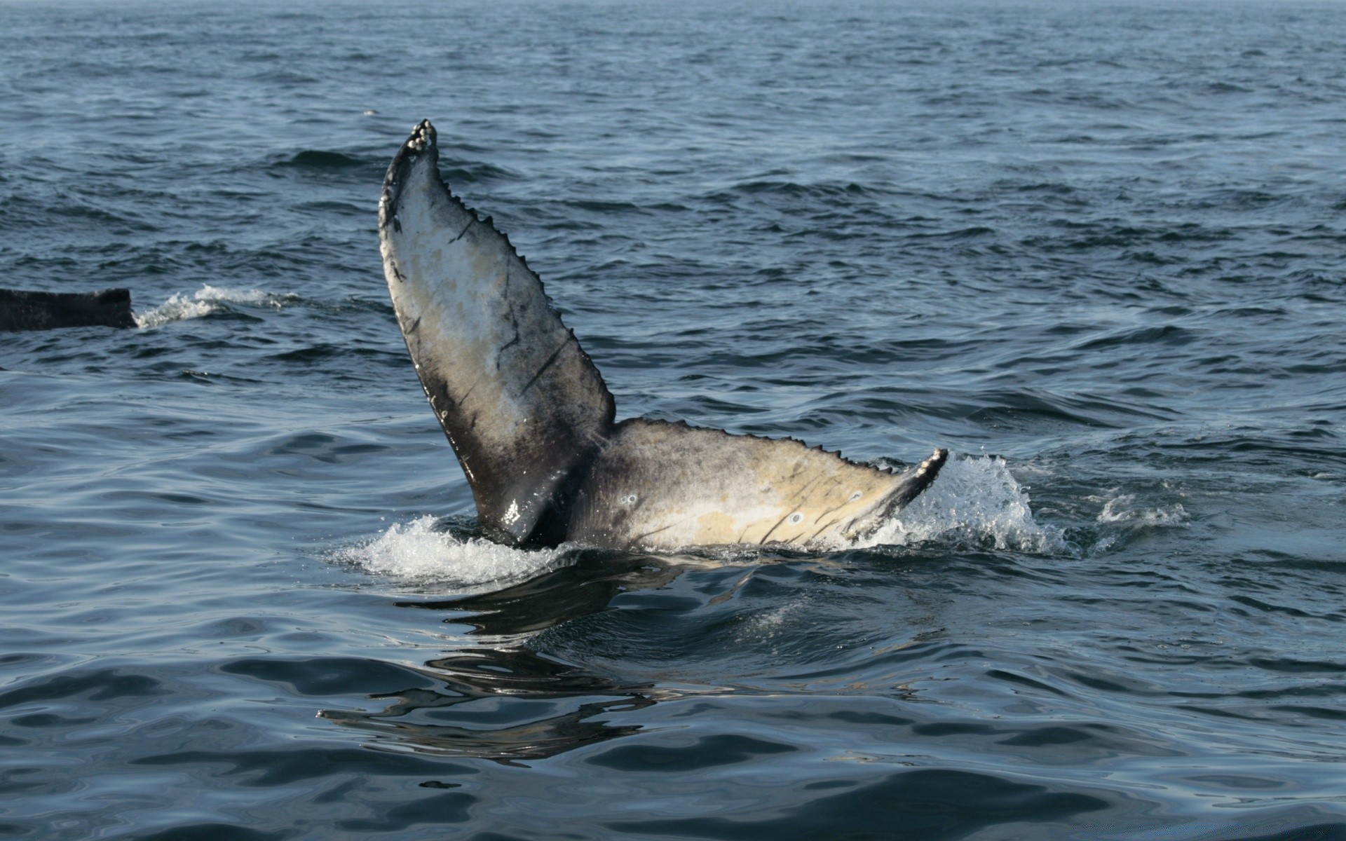 Schwanz eines schwimmenden Wals auf hoher See
