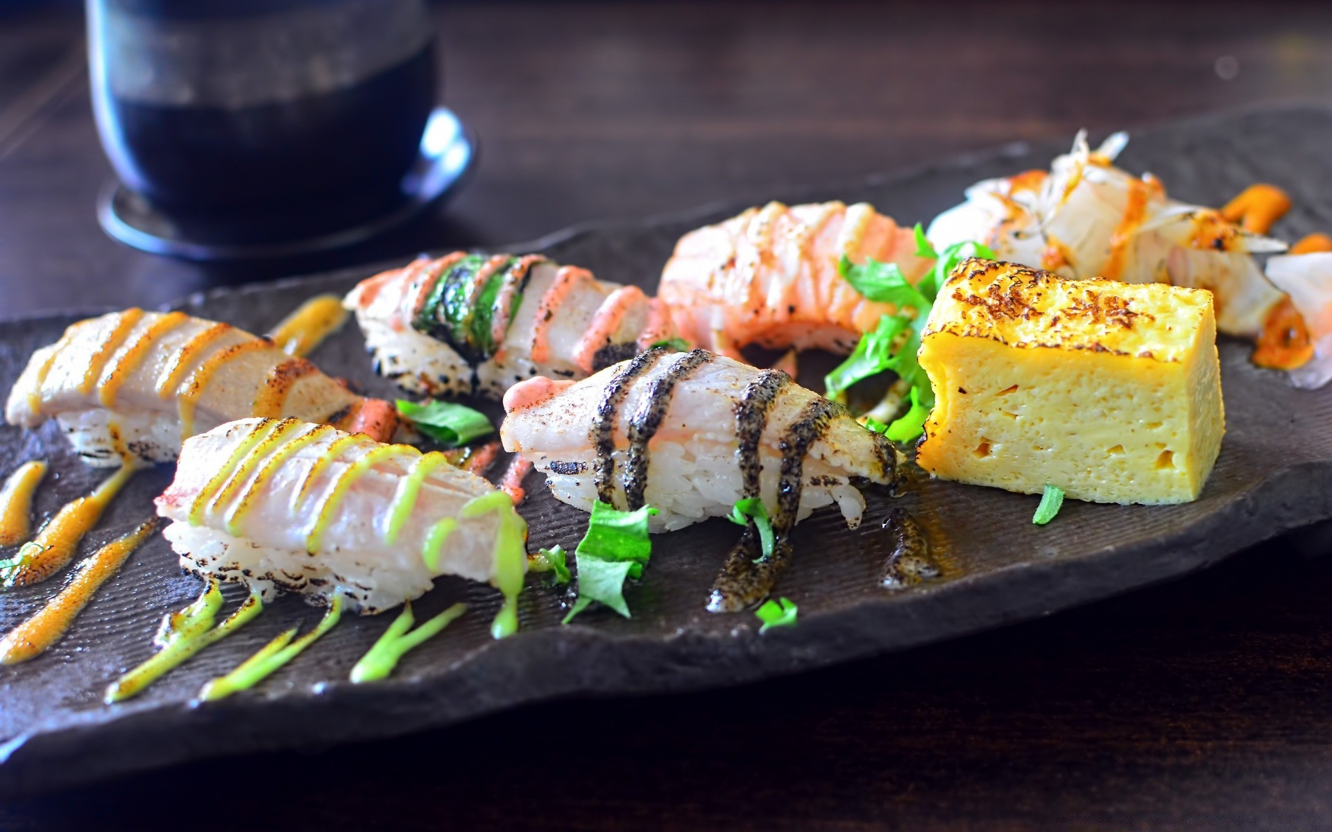 Ein bescheidenes Frühstück - grüner Tee und ein Brötchen mit Füllung