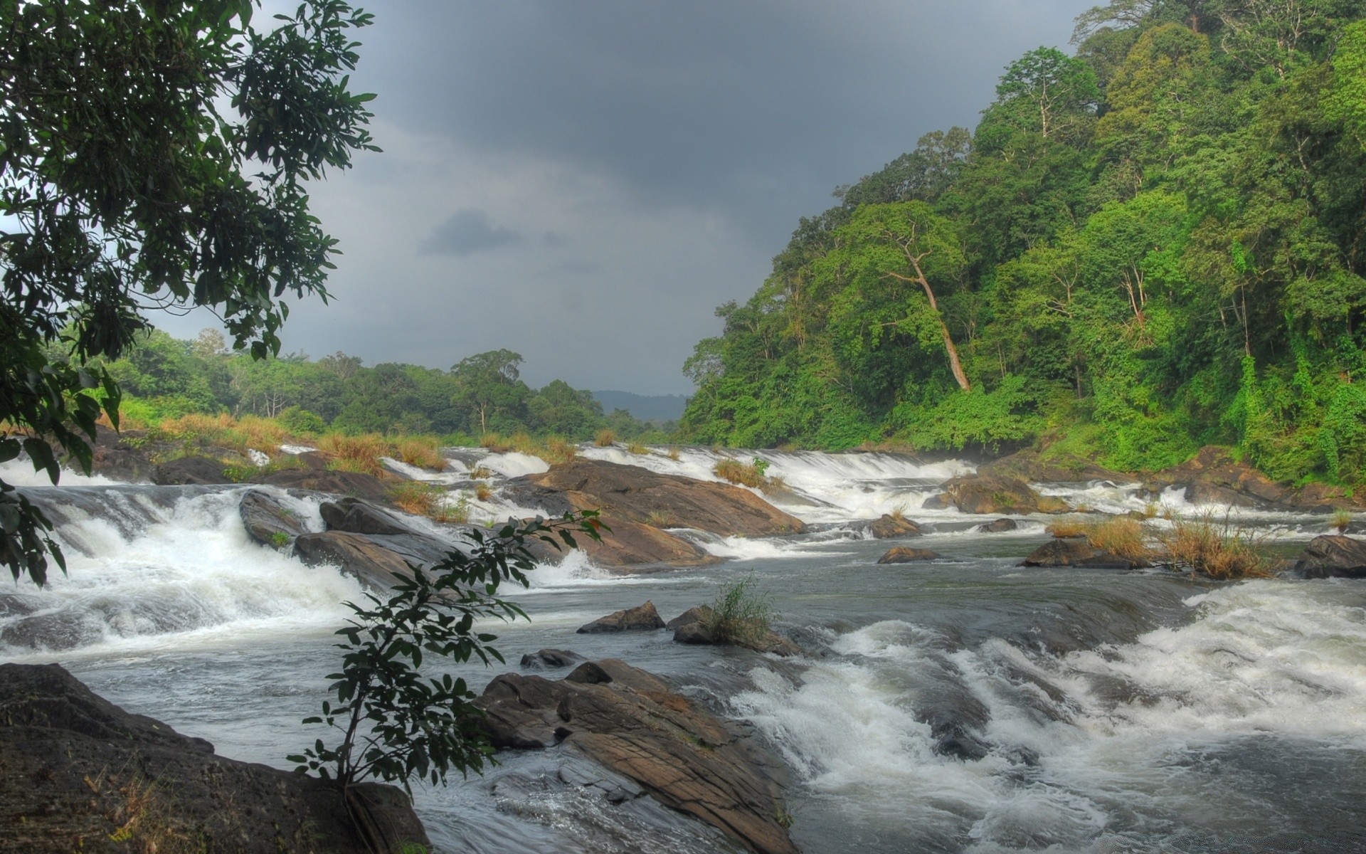 Blick auf das grasbewachsene Ufer, den See und die Morgendämmerung