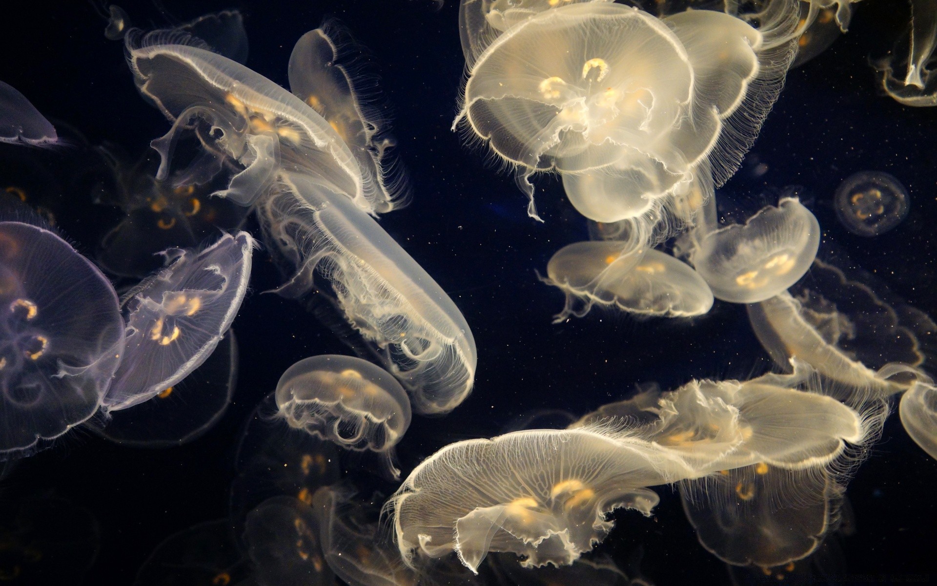 Röntgen einer Ansammlung von Quallen in der Unterwasserwelt in der Tiefe
