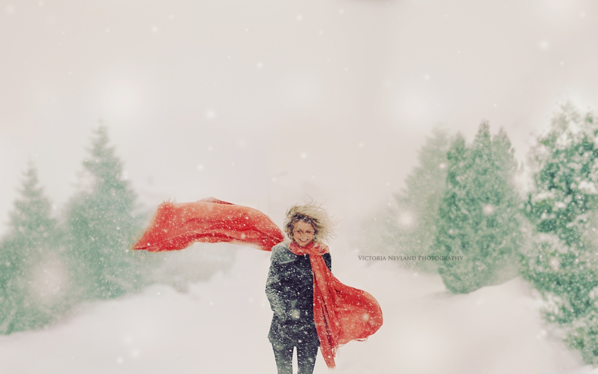 Das Mädchen eilt im Winter nach Hause. Schneesturm