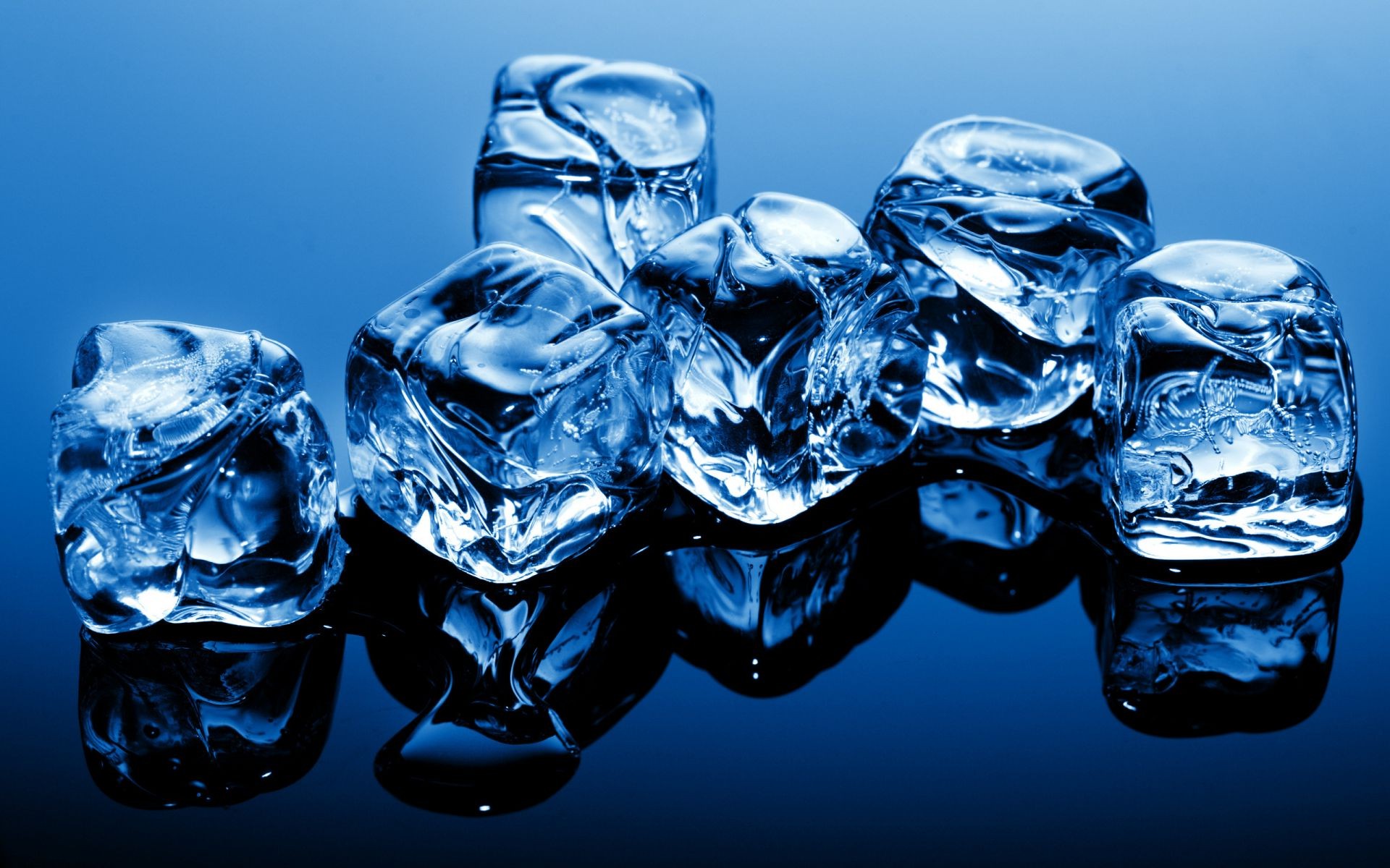 Aufgetaute Eiswürfel auf blauem Hintergrund