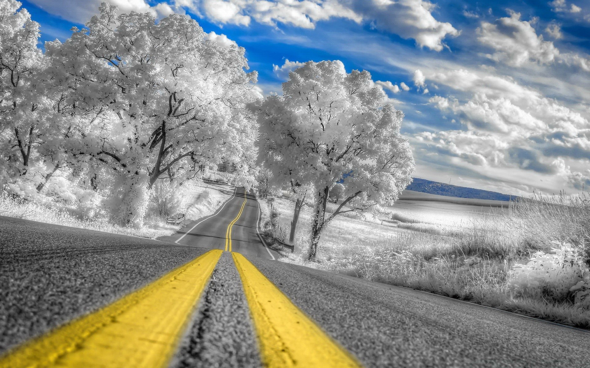 Eine landschaft mit einer eisenbahn, die in die ferne gehtEine Landschaft mit einer Eisenbahn, die in die Ferne geht