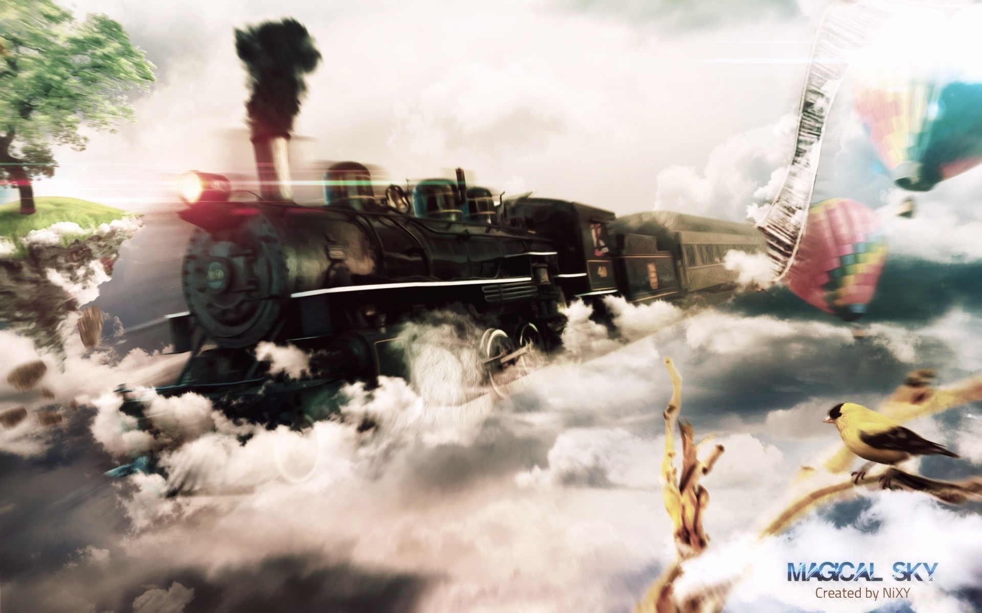 Ein Transportsystem namens Dampflokomotive, das im Freien mit Rädern klopft