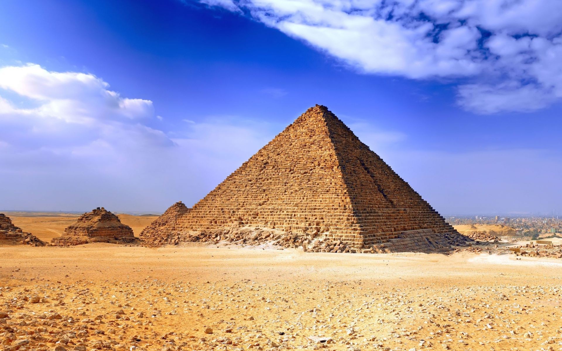 Ägyptische Pyramide auf einem blauen Himmelshintergrund