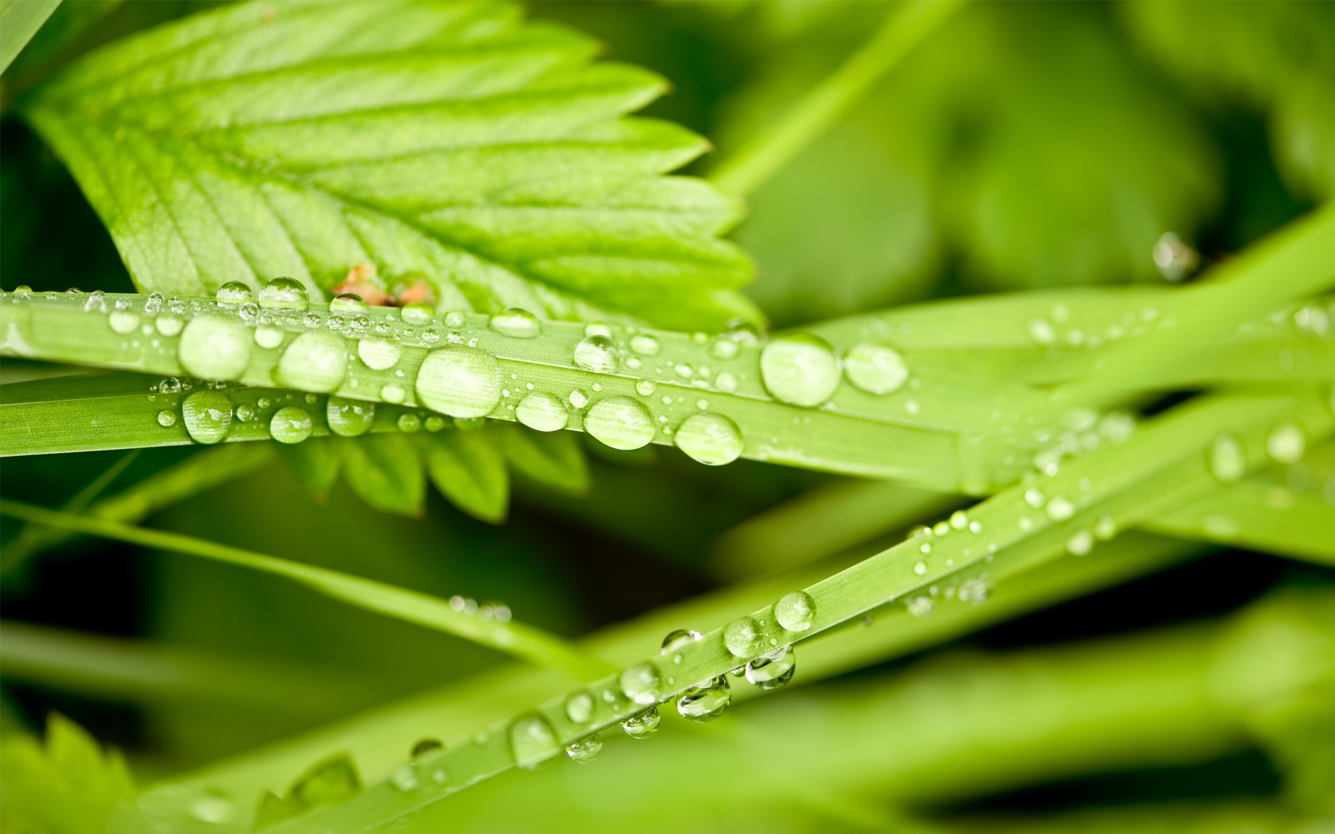 Grünes Blatt mit Tautropfen