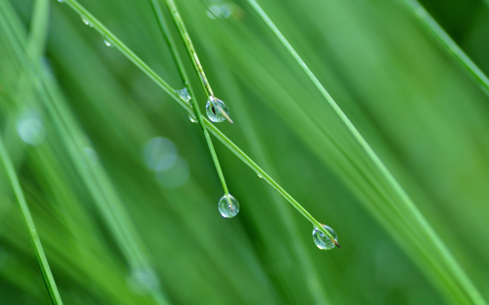 Makroaufnahme von Tautropfen auf einer Pflanze