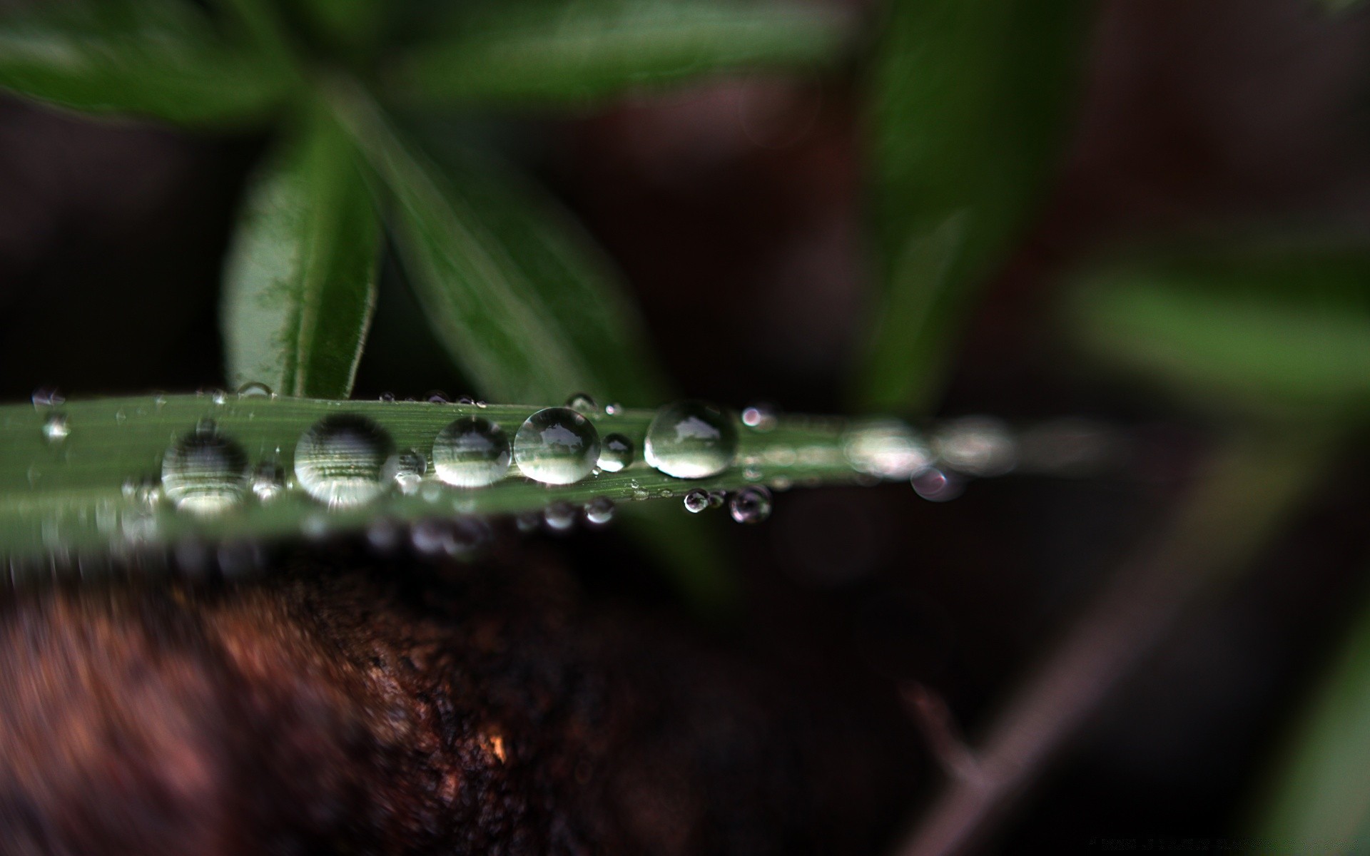 Tau auf einem Blatt. Tautropfen. Grünes Blatt