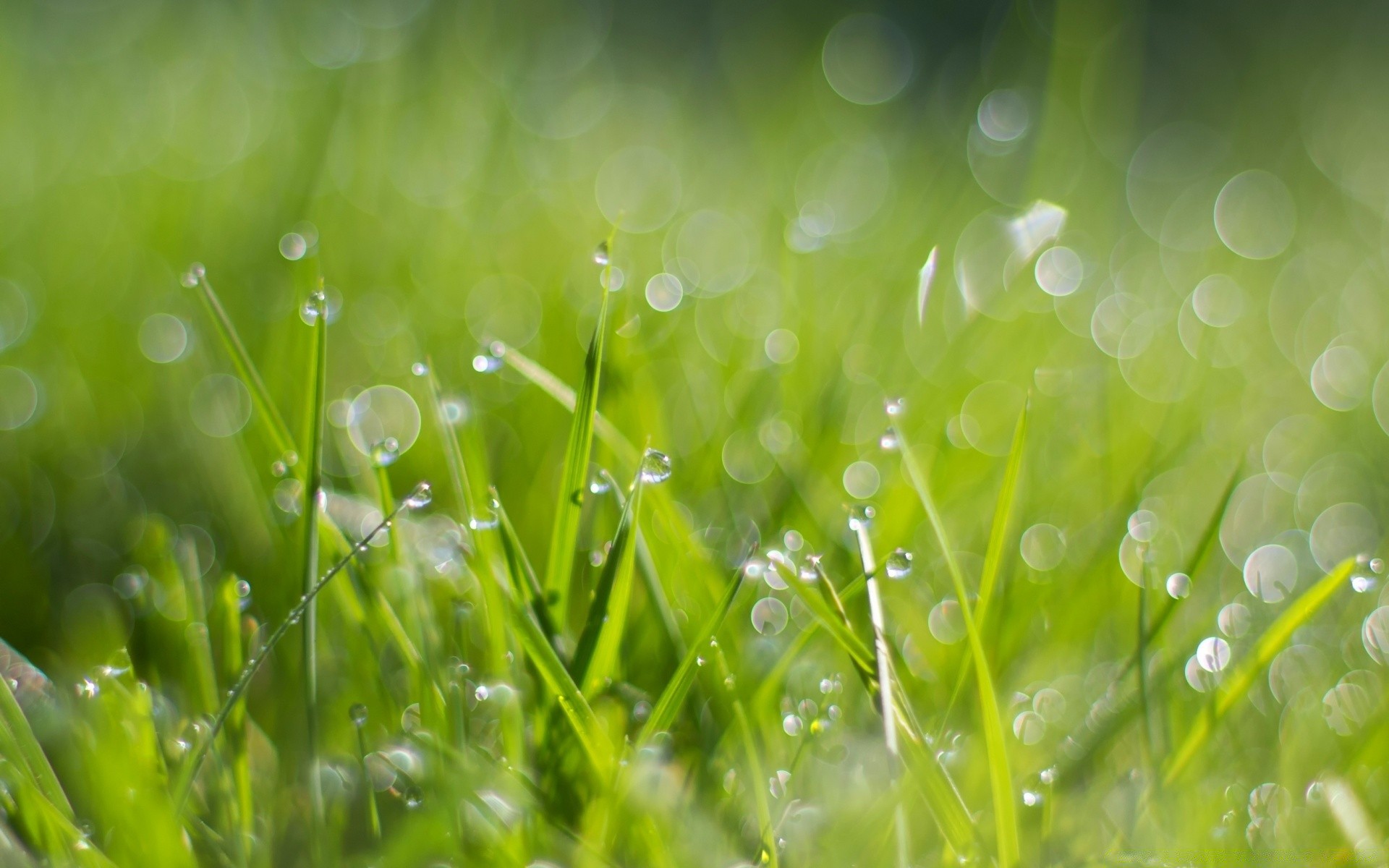 Tropfen der morgendlichen rasse auf leuchtend grünen blättern