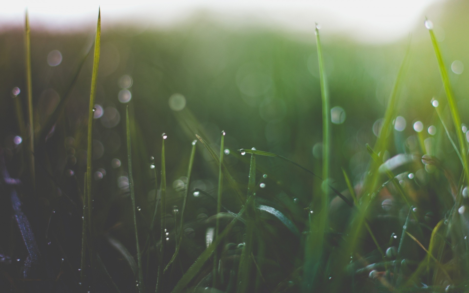 Marienkäfer sitzt auf einem Blatt mit Tautropfen