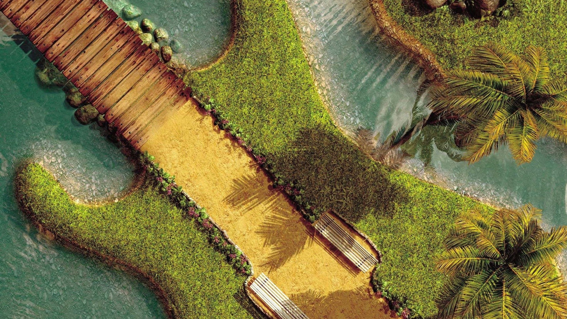 Mädchen in weiß auf dem Gehweg im Bungalow