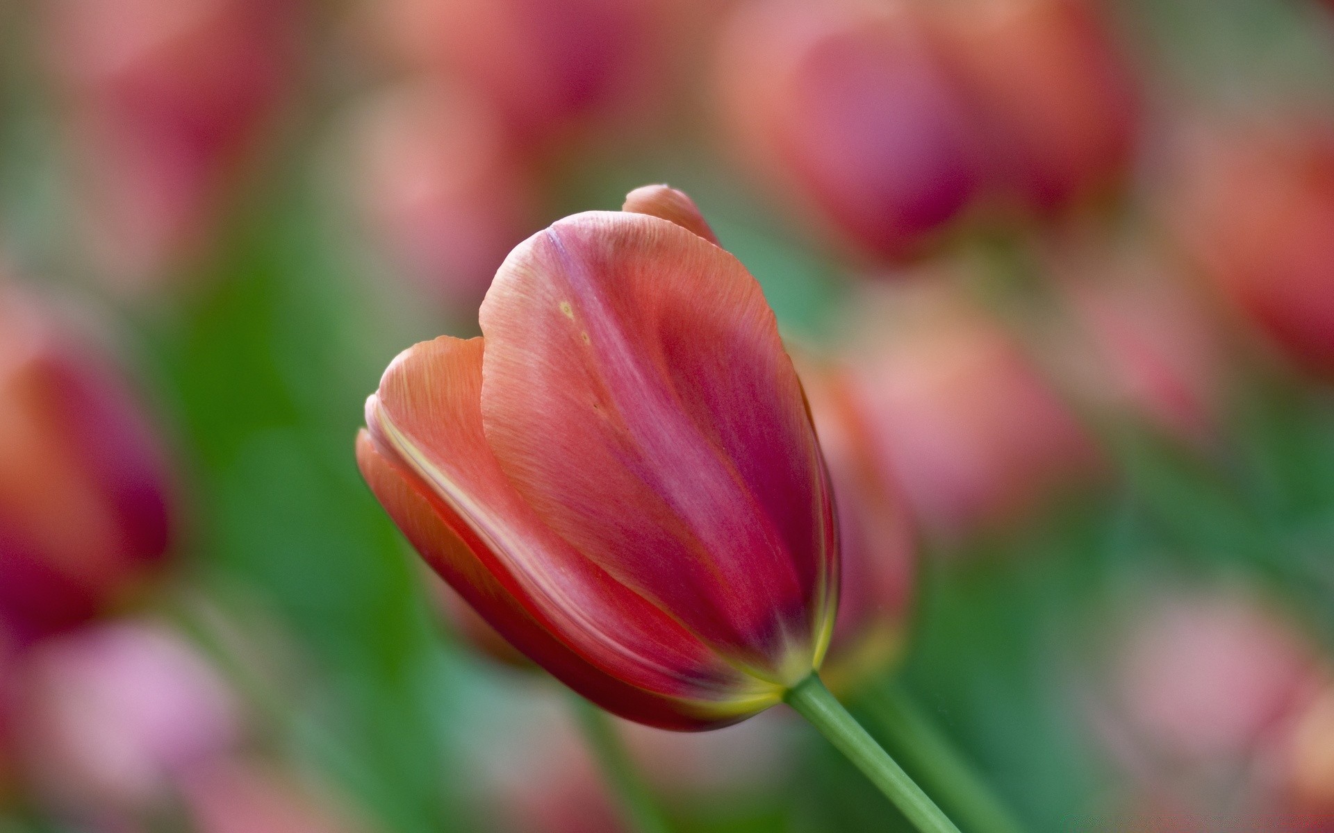 Ein Feld von Tulpenblüten in Streifen gepflanzt